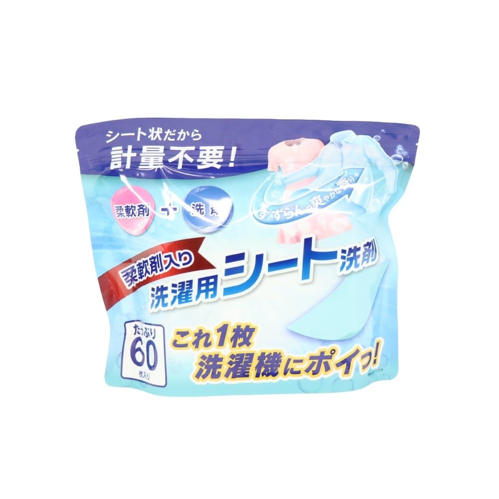ヒロコーポレーション 柔軟剤入り洗濯用シート洗剤 60枚入。 商品紹介 これ一枚で柔軟剤+洗剤/すずらんの爽やかな香り シート1枚を洗濯機に入れるだけで(2kg~4kg)簡単に洗濯ができる。 たっぷり60枚入り 洗濯物と一緒に入れるだけのシート洗剤。 柔軟剤と洗剤がこれ一枚でOK。 シート状だから計量不要。 お湯でも水でもすぐ溶ける。 すずらんの爽やかな香り。 【使用量の目安】 ドラム式洗濯物用 4~6Kg:2枚 2~4Kg:1枚 タテ型水量 45~65L:2枚 30~45L:1枚 2Kg未満の使用量の目安 水量 10~30L:1/2枚 10L以下:1/4枚 原材料・成分 界面活性剤(64%:アルキル硫酸エステルナトリウム、アルキルグリコシド(AG)、アルキルエーテル硫酸エステルナトリウム(AES)、アルフォレインスルホン酸ナトリウム(AOS))、仕上げ剤、柔軟性分、PH調整剤香料。 洗濯ものと一緒に入れるだけのシート洗剤。 S350-K9999