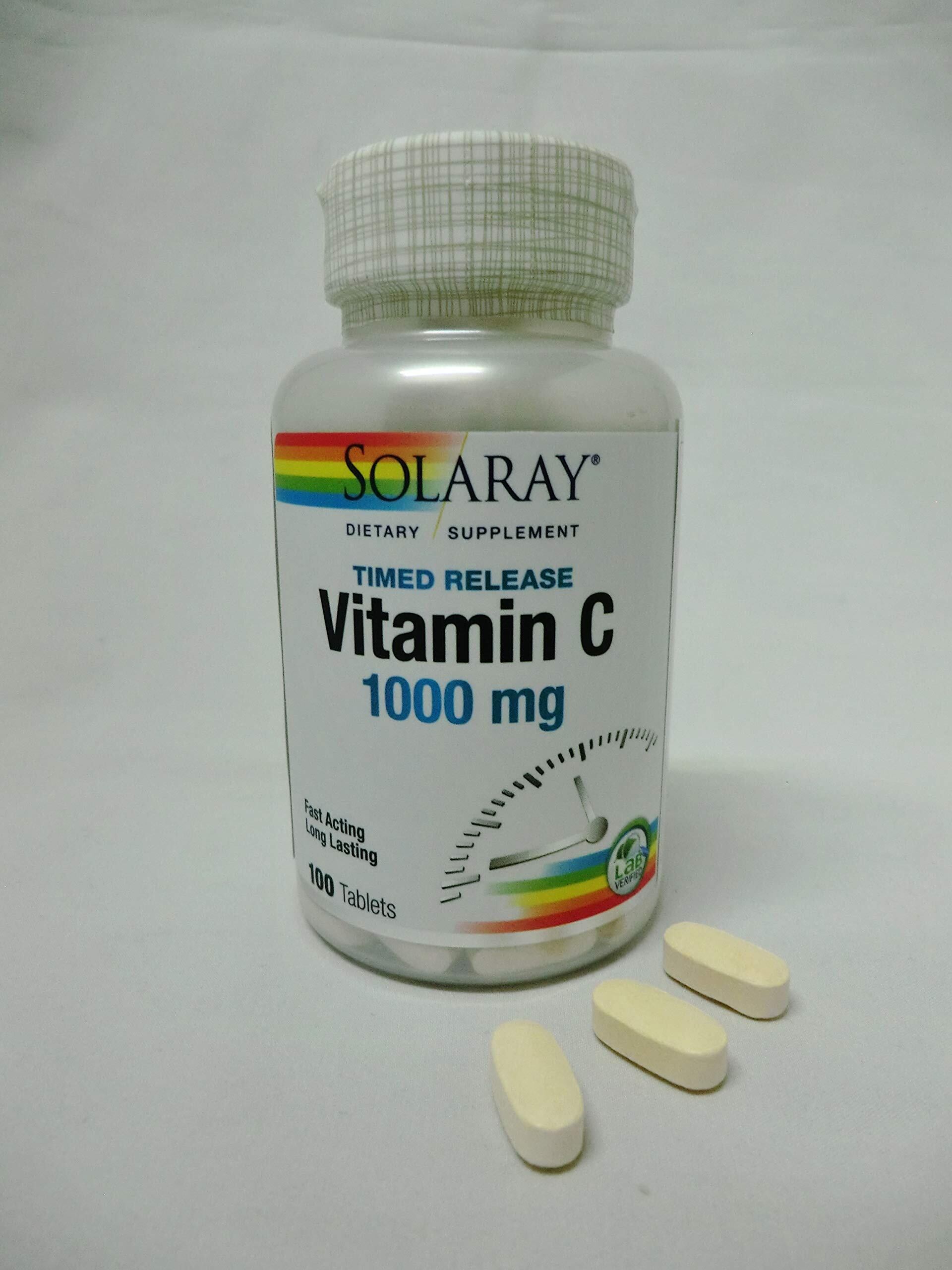 ソラレー ビタミンC 2ステージタイムリリースタブレット。 商品紹介 本製品は「2ステージタイムリリース」技術により、ビタミンCを小さな球体に包み、一定時間内に球体の壁が破られビタミンCが徐々に持続的に放出されます。 ファーストステージでは半分のビタミンCが即座に放出され、セカンドステージでは残りの半分が⒓時間かけてゆっくりと放出されます。 小さな球体の壁はとても薄く、タイムリリースの為の原材料をあまり必要としません。 他のタイムリリース技術では30~50%の割合でタイムリリースに必要な原材料としてショ糖、アセトンもしくは可塑剤などが使用されますが、本製品には使用を認められた最小限の原材料と75℃のわずかな熱量しか必要とせず、その分1粒により多くのビタミンCを配合しています。 カプセルを使っていない錠剤タイプですので直接体内に吸収されます。 栄養補助食品として1日1粒を目安に、水などと一緒にお召し上がりください。 使用上の注意 直射日光や高温多湿を避け、保存してください。 原材料・成分 アセロラ ローズヒップ ビタミンC セルロース 高級脂肪酸 微粒二酸化ケイ素。 商品サイズ (幅×奥行×高さ) :65×65×115(mm)。 内容量:100粒。 S000-K1010