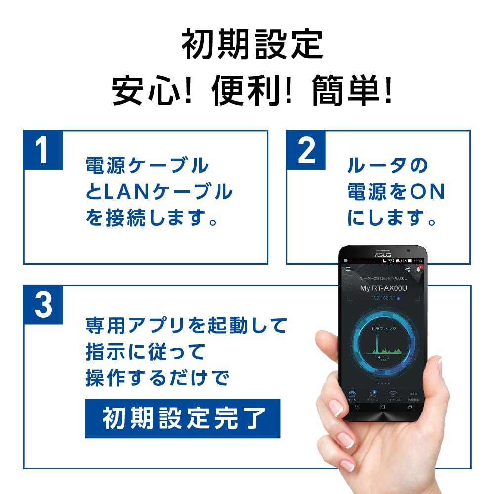 ASUS WiFi RT-AX5400 (A) 無線 ルーター 最新規格WiFi6 4804+574Mbps v6プラス/ OCNバーチャルコネクトに対応。 トリプルコア1.5GHzCPU搭載 最大2Gbpsの高速WANアグリゲーション接続 メッシュ/セキュリティ機能付 3階建4LDK。 Wi-Fi6対応 - 160 MHzチャネル幅の超高速Wi-Fi 6デュアルバンドにて、最大5400Mbpsの高いスループットを実現 WANリンクアグリゲーションによる2Gbpsの通信。 仮想的に1つの回線として束ねることで、WAN側で最大2Gpbsの通信が可能に。 Adaptive QoSでウェブブラウジングやメディアストリーミングなど特定の通信を優先化 1.5GHzクアッドコア64bit CPU搭載 – データ転送を高速化し、ストリーミングやゲーム体験を最適 AiMesh - 複数のWi-Fiルーターを繋ぎ合わせて、隅々まで広い通信範囲を提供するメッシュネットワークシステムAiMeshに対応 AiProtection – トレンドマイクロのセキュリティ技術を採用した「AiProtection」によって家庭内LANを強力に保護 *利用環境の目安 1広さ:戸建て 3階建/マンション4LDK~ 接続台数:70台 *AiMeshの最大構成可能台数は5台となります。 【ASUSルーターアプリ】 ルーターの設定やコネクションの診断、トラフィックの管理、さらにFWアップデートまで全てPCに接続することなく一つのアプリ上で実行可能です。 【選べるVPN設定】 ストリーミング、ゲーム、その他のアクティビティに安全で迅速なVPNアクセスをお楽しみください。 ASUSルーターアプリとWebインターフェイスの両方を使用し て、OpenVPNやWireGuardなどのVPN接続を簡単に設定および管理し、より多くのVPNシナリオに対応できます。 VPNフュージョンではVPNとインターネットを同時に接続することができます。 ユーザーの一部がVPNを使用する場合においてもゲーム通信スピードを維持することが可能なため、よりスムーズなゲーミングが可能になります。 【安全に暗号化されたリモート接続】 リモートワーカーは、各デバイスにVPNソフトウェアをインストールする必要なく、企業ネットワークに安全にアクセスできます。 PPTP、L2TP、OpenVPN、WireGuardなど、さまざまなVPN接続タイプを作成できます。 【どこにいても安全なインターネット】 インスタントガードにより、公共のフリーWi-Fi使用時にルーターとデバイスの間に安全なVPNを構築することで、インターネットに送信したクレジットカード情報、ビジネスデータ、eメール、メッセージ、ウェブ閲覧などのお客様のデータ、プライバシーを保護し、完全な匿名性を保つことができます。 【ご自宅全体をカバーするメッシュネットワークシステム】Wi-Fiカバレッジは、部屋のレイアウトや建築材料、家具の配置といった様々な要因によって影響を受けます。 AiMeshは、複数のASUS Wi-Fiルーターを繋ぎ合わせて家庭内の隅々までWi-Fiネットワークを構築し、最適な電波を提供するASUS独自の機能です。 ネットワーク内に異なるモデルのASUSルーターを混在させることができるので、すでにお持ちのASUS Wi-Fiルーターをご活用いただけます。 また、シームレスなローミング技術によって、ネットワークを切り替える必要もありません。 AiMeshは、信頼と柔軟性を持ち合わせたWi-Fiネットワークです。 【家中どこでも快適に】 WiFi6はOFDMAテクノロジーを使用して、各ワイヤレスチャネルをより小さなサブチャネルに分割することで、WiFi信号範囲を拡大し、通信範囲を向上させます。 ASUS AiMeshがあれば1つのSSIDをホームネットワーク全体で使用でき、WiFiデッドゾーンのないシームレスな通信環境を実現します。 超高速で信頼性が高く、安全なWiFi接続が提供され、自宅内外の離れた場所でも高速接続が可能になります。 【ビジネスレベルのセキュリティ機能】 トレンドマイクロの技術を採用したAiProtectionは、インターネット上の悪質Webサイトへのアクセスのブロック、不正アクセスがあった場合の通信の遮断、ウイルスなどに感染したデバイスからの外部への通信のブロックし、インターネット上の脅威からデバイスや個人データを保護します。 また、WPA3では、パスワード破りに対する認証が強化されたほか、パスワードを破られた場合にも暗号化されたWi-Fi通信を解読できないよう強化されています。 【IPv6 IPoE(IPv4 over IPv6)対応】 v6プラス対応。 IPv6/IPv4共にインターネット接続可能。 【スマートホーム向けWi-Fi】 最大5,400Mbpsの高速通信を実現する超高速Wi-Fi 6ルーターにパワフルなトリプルコアCPUを搭載することで、処理能力を向上し、より多くのデバイスに対応。 【2Gbps WANアグリゲーション 】 最大2Gbpsの高速WAN接続により、スマートホームや中小企業に安定したインターネット接続を提供。 【ワンタップで安全なブラウジング】 ASUSセーフブラウジングで望ましくないコンテンツをブロックし、検索結果から不適切なコンテンツをフィルタリングしてオンラインの危険からお子様を保護。 【AiMesh】複数のWi-Fiルーターを繋ぎ合わせて、隅々まで広い通信範囲を提供するメッシュネットワークシステムAiMeshに対応。 【複雑な設定は一切なし!アプリで安