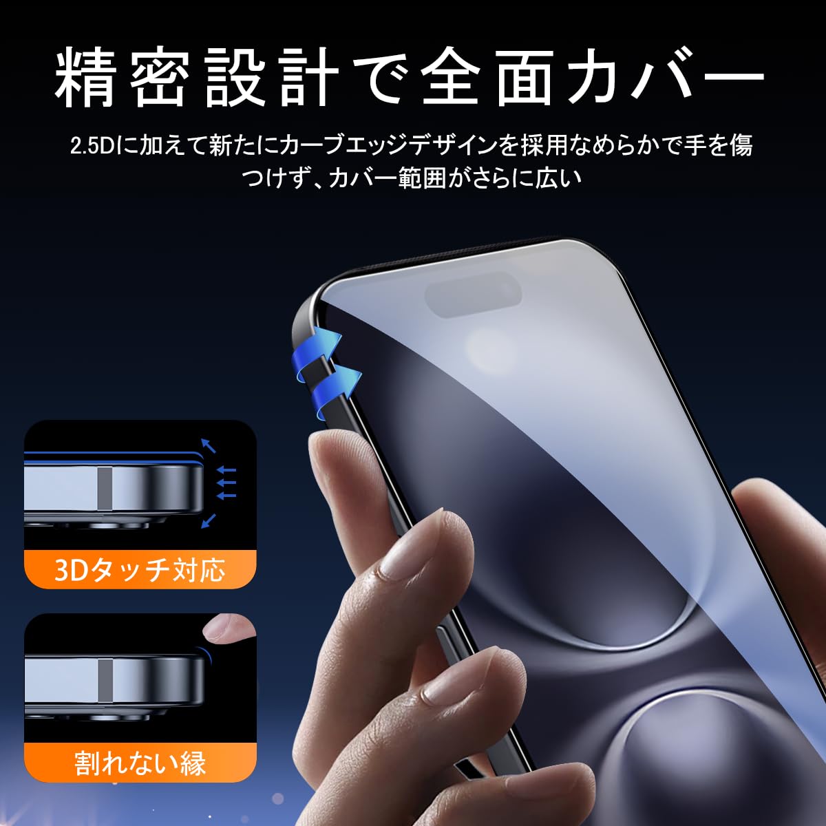 【2+2枚セット ガイド枠付き】 対応 iPhone 16 Plus ガラスフィルム 6.7インチ スマホ 保護フィルム (2枚) + 用 アイフォン16Plus レンズ保護フィルム (2枚) 【日本製素材旭硝子製】 用 いphone16Plus フィルム 強化ガラスフィルム 高透過率、硬度9H、3D Touch対応、飛散防止、指紋・汚れ防止、気泡ゼロ、ラウンドエッジ加工JCJCLY-IP16PS。 【国産旭硝子AGC素材の採用】:420℃の高温硬化処理と二次強化を6時間行って、弊社製品の強さは普段の商品と比べて5倍以上があり、液晶画面をしっかりと保護しますかぎやナイフなどの鋭いものに触れても傷しにくいですそして二次強化した後の旭硝子材質は靭性が高くて割れにくいです更にガラスの表面に防爆PET層を増やして、衝撃されても割れたら飛散しなく、特殊な飛散防止設計により、万一割れてしまった際にも飛散することなく、高い安全性を実現します本体に圧倒的なフィット感も実現していますすり傷や指紋からもスクリーンをしっかりと保護します。 【貼り付け簡単、防水、油防止、指紋防止】:グレードアップしたイオン自働吸着技術を採用して、初心者でもたった3ステップ、10秒で簡単に綺麗で貼り付けることができます失敗の発生を防ぐことができて、ご心配を完全に解消しますそうすれば、フィルムの貼り付けが苦手な方でも簡単に貼れます耐用性が高い防汚コーティングで、指紋や汚れが付きにくいです指紋・油分・水分・汚れなどがつきにくくなります画面に汗、油、化粧品などがついても、簡単にふくだけで取れます【指紋認証設定手順】保護フィルムを貼り付けた後、指紋を再入力する必要がありますそうすれば、指紋認証と解除機能が実現できます。 【透過率99%・心地よい肌触り】:ガラスフィルムを貼ったせいで指のすべりが悪くなってしまったり感度が悪くなってしまったりしたら、スマホの機能性が下がってしまいますね丶このガラスフィルムはつるつるな滑り感を実現液晶画面保護ガラスフィルムを改善した後、約99%の高透過率に達し、もっと高い透過率及び、超クリアな視覚体験を実現しますそして耐用性が高い撥油コーティングし、滑らかで快適な肌触りがあり、快適な操作性が長く持ちます普通のフィルムのようなざらざらしたタッチ感がまったくなく、指がスムーズにスライドすることができるので、ゲームプログラムに最適、液晶画面の鮮明さを影響しなく、画面本来の美しさをそのまま再現します。 S320-K9999