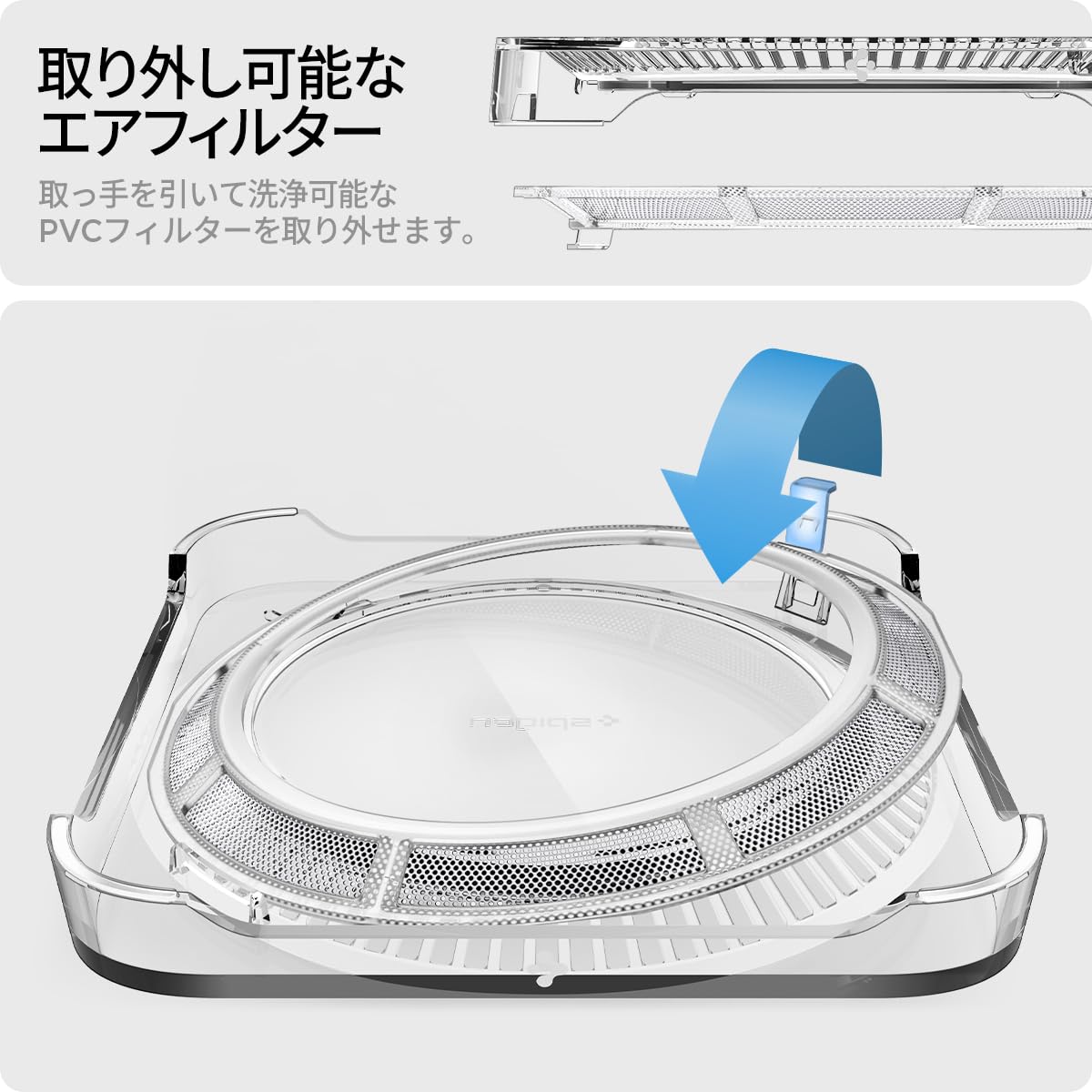 Spigen Mac Studio (2025/2022年) デスクトップスタンドマウント エアフィルター内蔵 LD202 (クリスタルクリア)。 耐久性のあるPMMA、アクリル、PVCで作られた最小限の透明デザイン。 Mac Studioの性能をPVCフィルター内蔵で保護し、ほこりの蓄積を防ぎます。 お手入れとメンテナンスの手間がかからない: PVCフィルターを簡単に取り外し、水の下で流してほこりを取り除きます。 ゴム引きのシリコンパッドがMac Studioに滑り止めグリップを提供します。 Apple Mac Studioのみに対応。 S000-K1010