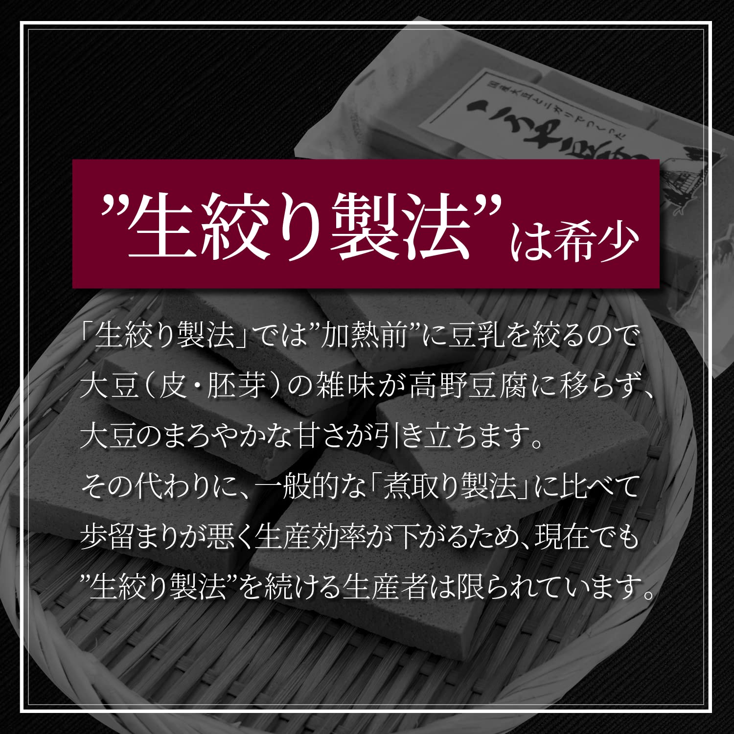 信濃雪 高野豆腐 国産大豆使用 にがり仕込み 生絞り製法 99g (3袋)。 【国産大豆100%使用】東北地方を中心とした国産大豆のみを厳選して使用しています。 にがりを使って国産大豆のおいしさを引き出しています。 【内容量】1袋6枚(99g)×3袋セット。 【生絞り製法】業界唯一の「生絞り製法」で製造したこだわりの高野豆腐です。 生絞り製法でつくる高野豆腐は雑味が少なく、大豆本来のまろやかな甘みを感じやすいのが特徴です。 (大豆の皮や胚芽に含まれる苦味を加熱前に取り除く製法)。 【サイズ】一般的な大きさ・厚みの高野豆腐です。 そのまま、またはひと口サイズにカットしてお召し上がり下さい。 冬は鍋に入れるのもおすすめです。 【原材料】大豆(国産、遺伝子組み換えでない)/にがり(塩化マグネシウム)、重曹(膨軟剤)。 S350-K9999