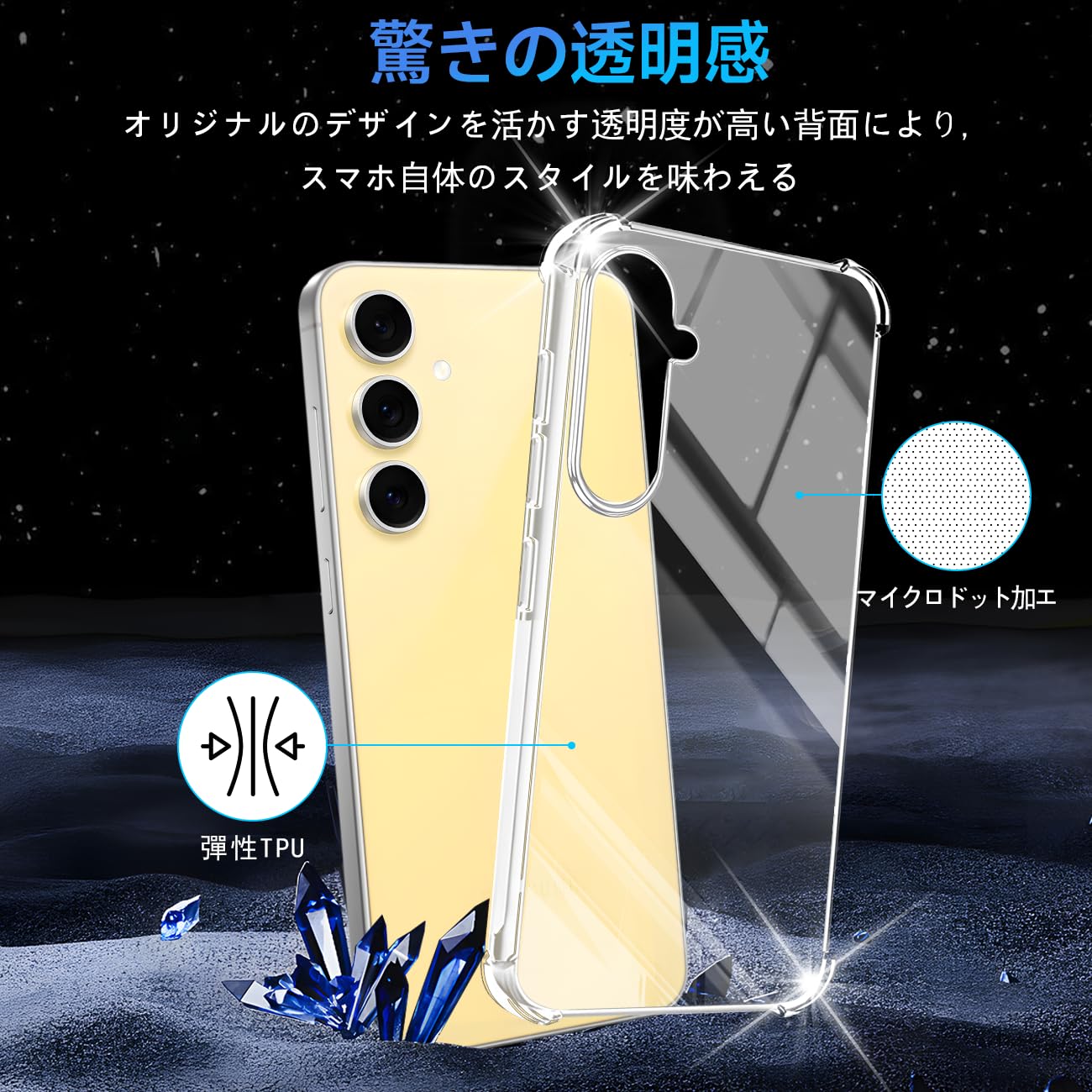 対応 Galaxy s24 FE 5G ケース Galaxy s24 FE 5G クリア ケース あんしんファミリースマホ カバー TPU 保護ケース カバー背面 シェル クバー ソフト 透明シェル ンプロテクター SENXLL-S24FET1。 【360°フルガード 軍用グレード、高い耐衝撃性】 本製品はに対応する透明ケースです。 外側のシェルは高い耐黄い耐性を備えた最先端技術ADMを採用しております。 しかも環境にやさしく、無毒で無味の高品質の素材を使用して、酸化防止処理しており、長年でも黄色くなりません。 多数回のテストした後、2mの高さで様々な角度から26回落としましたが、携帯電話が全然傷がありませんでした!更に四隅の耐衝撃性は通常の携帯電話ケースの5倍に達し、携帯電話を全面的に保護できます。 (ご注意:ご購入前機種をよくご確認くださいね。 間違った機種の購入による使えないことを避けてください)。 【細かいところまで保護できる安心設計・レンズと液晶画面にも保護】携帯電話を平らな面に置いたとき、液晶画面とカメラレンズの接触による不具合を最小限に抑えるため、カメラレンズより0.5mmをアップし、液晶画面より0.8mmアップしております。 スクリーンを保護する同時に、ガラスフィルムをまったく邪魔しません。 更に滑り止めと落下防止の設計があり、テーブルから滑り落ちる心配はありません。 裏面は放熱性に優れたポリカーボネート素材を採用し、効率的に放熱し、バッテリーを完璧に保護することができます。 携帯電話ケースを付けたままでもワイヤレス充電が可能です。 【優れた精度】Galaxy s24 FE 5G ケース 薄くて頑丈で、程よいグリップ感があり、できるだけスマートフォン本体のスリムさを極力損なわないように設計した透明背面ケースです。 位置、及び全てのスピーカー、ポート、ボタンを精密に設計しており、充電、及びヘッドフォンで音楽を聴いても機能的な使用を妨げなく、携帯電話に負荷をかけなく、簡単に取り付けることができます。 【完全透明・上質な透明感】 超精密な光透過分子を備えて、後ろの光透過率は 99% に達します。 後ろのポリカーボネートの耐用性と耐摩耗性が抜群です。 本来の美しさや高級感を影響しなく、シルクと全く同じ風合いで、涼しい触る感じがあります。 誰にでも適用し、夢中になってしまって触りたくなります。 【傷も指紋も防止・フィット感も満点】 いつも指紋や油汚れに悩んでいますか。 携帯保護ケースをお選びください。 高精度の表面処理を採用して、しかも携帯電話ケース全体にも防汚バイオテクノロジーを採用しており、指紋や汚れがついても、水洗いして布で軽く拭くとピカピカになります。 スマホケースのエッジ部分はダイヤカット処理を使って、より洗練で美しい見た目があります。 S000-K9999