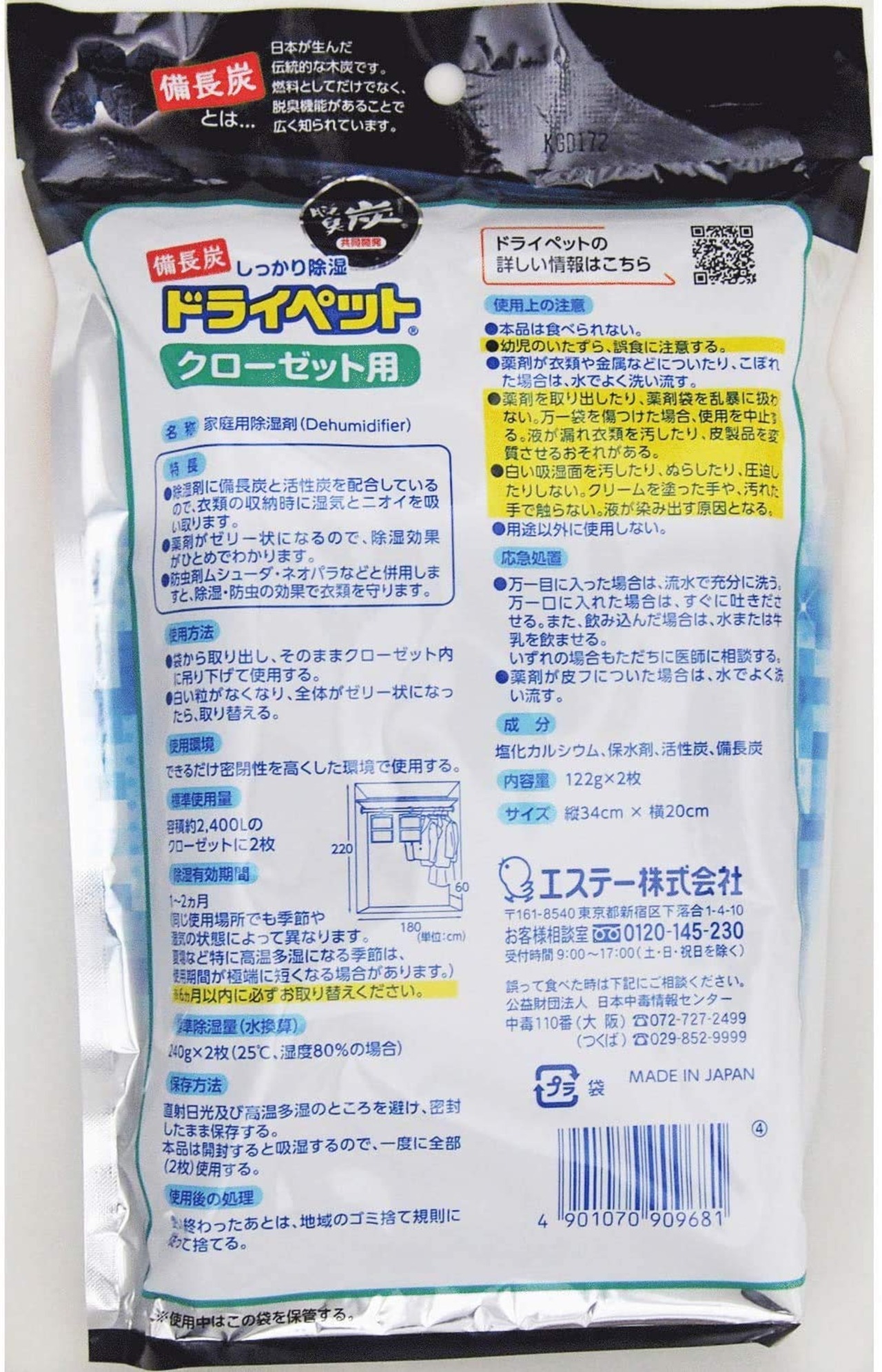 【まとめ買い】備長炭ドライペット 除湿剤 クローゼット用 2枚入×4個。 S000-K1010