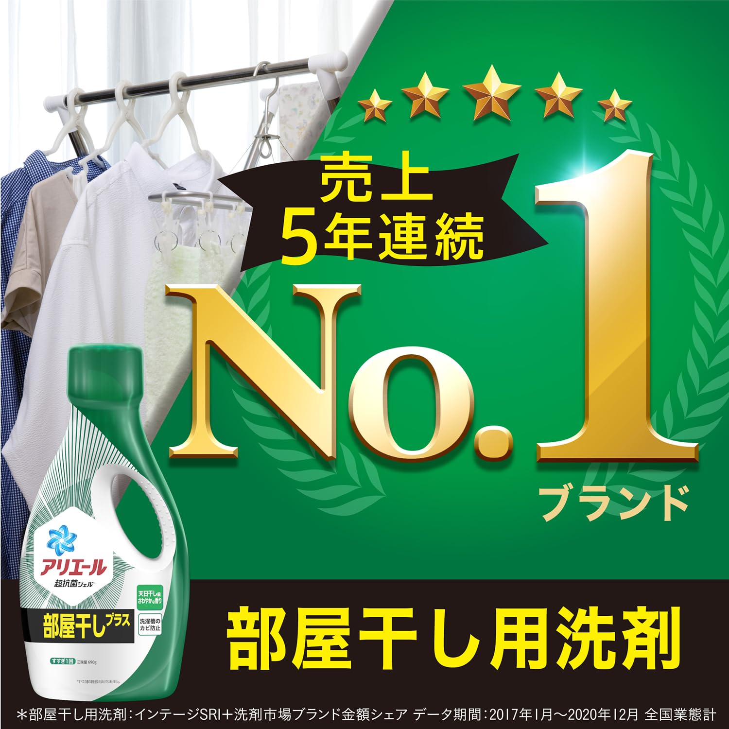 アリエール 超抗菌ジェル 部屋干しプラス ウルトラジャンボ 詰め替え 1.52kg。 商品紹介 売上No.1(※1)アリエールの部屋干しプラス。 除湿乾燥機レベルの消臭力。 カラッとニオイゼロへ(※2)。 超抗菌(※3)、煮沸レベルの超消臭(※2)。 厚手タオルやパーカーの生乾き臭も徹底消臭。 洗濯槽の防カビOK。 すすぎ1回OK縦型洗濯機、ドラム式洗濯機OK 天日干し級にさわやかな香り ※1…インテージSRI+ 液体濃縮洗剤市場ブランド金額シェア。 データ期間/2021年10月~2022年9月全国業態計 ※2…P&G調べ。 ニオイの度合いにより、落ち方の程度は異なります。 ※3…すべての菌の増殖を抑えるわけではありません。 原材料・成分 界面活性剤(22%:ポリオキシエチレンアルキルエーテル、直鎖アルキルベンゼンスルホン酸塩)、安定化剤、分散剤、蛍光増白剤、酵素。 液体洗剤。 S000-K9999