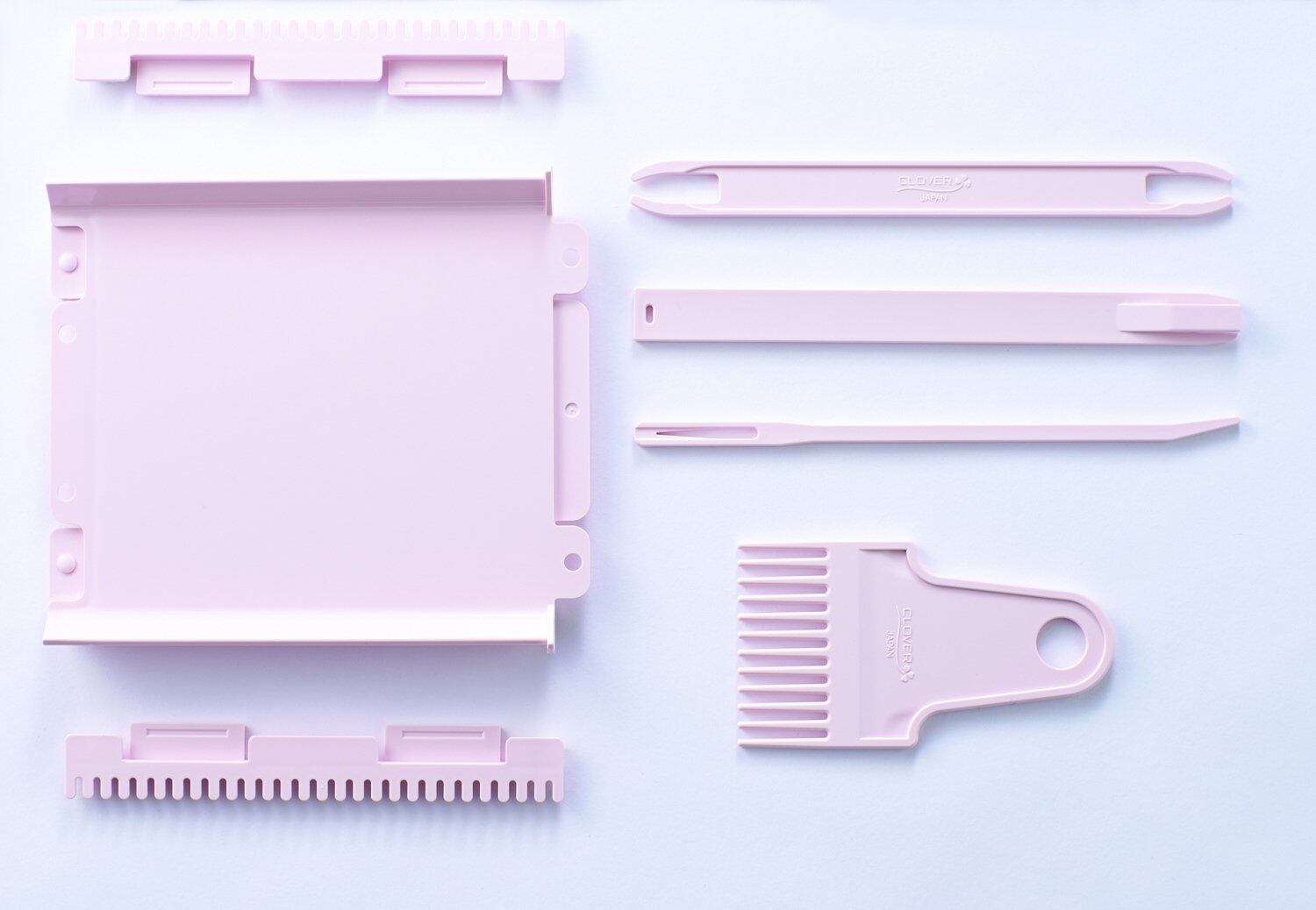Clover 手芸用品 ミニ織り 幅約13cm×長さ約13cm 57-968。 シンプルで使い方が簡単な樹脂製の小型織り機です。 超極太糸まで対応できます。 マフラーのように長い作品を作る場合はたて糸をつなぎながら簡単に織ることができます。 横幅のある作品を作る場合は関連商品のミニ織り ツインがお勧めです。 付属品としてフレーム、織りくし、シャトル、持ち上げバー、織り針が各一個、織り歯が2個入っています。 わかりやすい基本説明書と作品レシピ付。 使い方動画を見る場合は【クロバー ミニ織り 動画】で検索して下さい。 ・セット内容:フレーム、織り歯、シャトル、 。 セット内容:フレーム、織り歯、シャトル、。 S000-K9999
