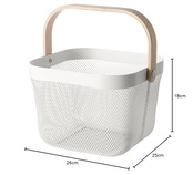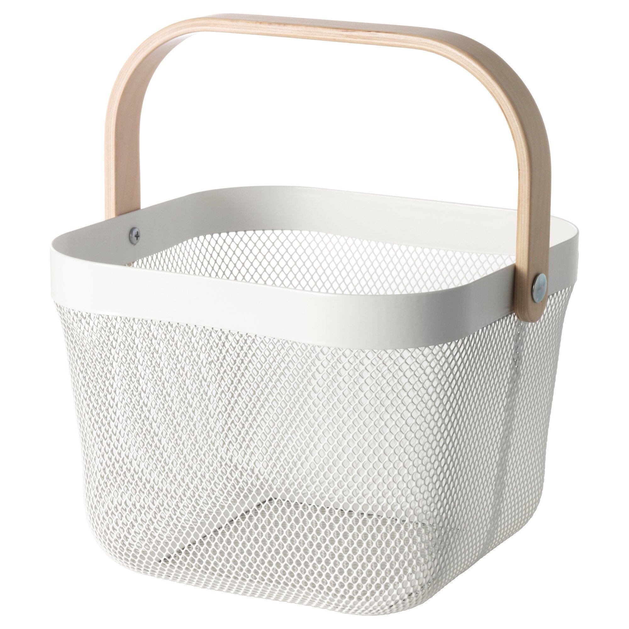 【IKEA/イケア】RISATORP バスケット, 合金鋼 ホワイト。 商品の大きさ: 長さ:25cm高さ:18cm幅:26cm -------------------------------------------- 主な特徴: -------------------------------------------- デザイナー: WiebkeBraasch -------------------------------------------- お役立ち情報 食器および調理器具としての安全性テストに合格しています -------------------------------------------- お取り扱い上の注意: -------------------------------------------- 素材 & アイテムのサイズと重量 バスケット:スチール粉体塗装取っ手:バーチ材突き板透明アクリルラッカー。 長さ:25cm高さ:18cm幅:26cm。 素材: 合金鋼; アクリル; 金属。 パッケージ重量: 0.57 kg。 形: 長方形。 S000-K9999