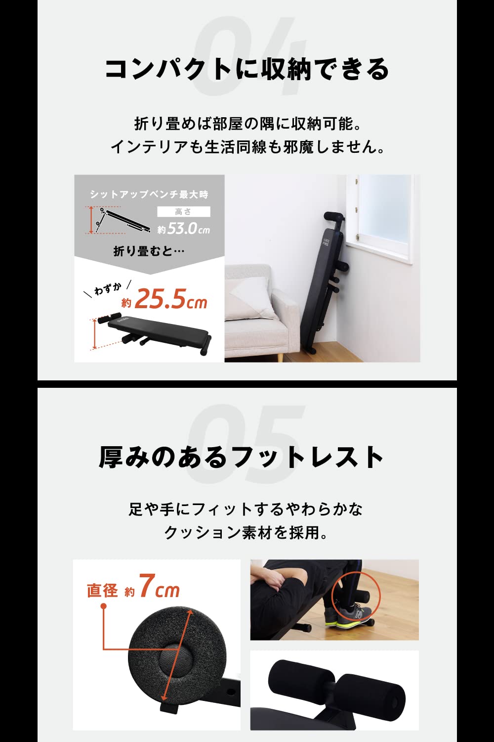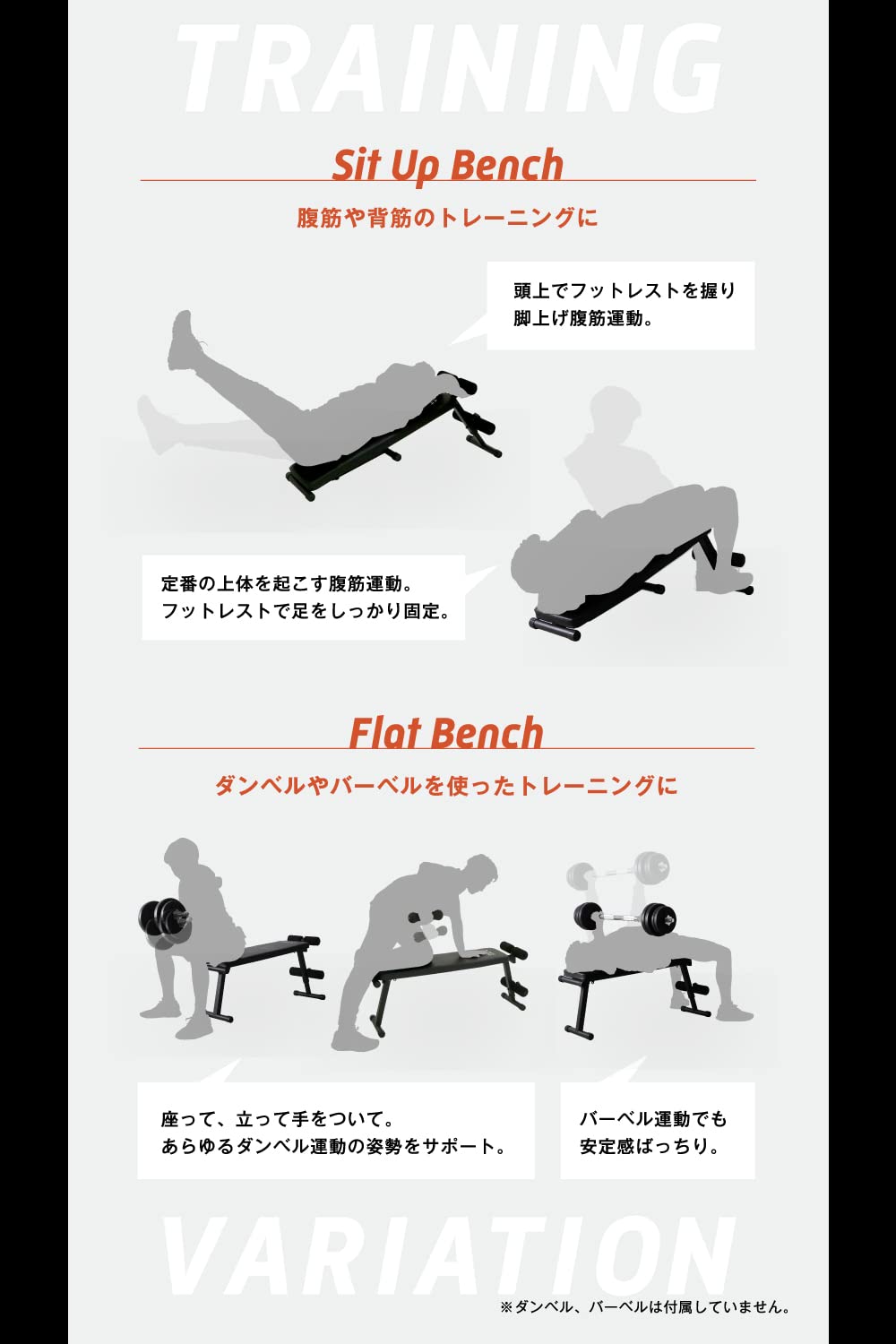アルインコ(ALINCO) トレーニングベンチ シットアップベンチ フラットベンチ 可変式 組立簡単 筋力トレ 角度調節簡単 2WAY 腹筋台 トレーニングベンチ200 FA200 ブラック。 シットアップベンチとフラットベンチの2WAY仕様のトレーニングベンチ。 1台でシットアップベンチ・フラットベンチと切り替えて使用できるので、充実した宅トレを行えます。 クッションは約5㎝のしっかりとした厚みがあり、運動中の骨の圧迫による痛みを予防し快適に運動することが出来ます。 座面は角度の調節をすることで腹筋運動やダンベルトレーニングなどの多彩な運動が可能になります。 厚みのある柔らかいフットレストは、腹筋時の足の固定や手で握って足上げ運動をする際に活用出来ます。 折り畳めば厚みはわずか25.5㎝となり、部屋の隅やクローゼットに収納できます。 お部屋の邪魔になりません。 【1台で宅トレが充実するトレーニングベンチ】シットアップベンチとフラットベンチを切り替えて使える2WAY仕様のトレーニングベンチです。 クッションは約5㎝のしっかりとした厚みがあり、トレーニング中の骨の圧迫による痛みを予防し、快適に運動することができます。 【簡単傾斜調整】シットアップ時は座面の傾斜を4段階で調節することが出来ます。 運動時の可動域が広がり、より負荷をかけながらトレーニングすることが可能です。 (フラットベンチ時は角度調節が出来ません。 )。 【厚みのある柔らかいフットレスト】足にフィットするクッション素材の柔らかいフットレストは、腹筋時の足の固定や、手で握って足上げ運動などにも活用できます。 【折り畳み可能でコンパクト収納】折り畳み時の厚みはわずか25.5㎝。 部屋の隅やクローゼットの隙間に収納できるため、お部屋のスペースを取りません。 【商品詳細】本体サイズ:(フラットベンチ)W335×D1,175×H475㎜、(シットアップベンチ)W335×D1,280×H530㎜(最大時)折畳サイズ:W335×D1,135×H255㎜本体重量:約7㎏耐荷重:90㎏傾斜角度調整:4段階(18°/20°/22°/24°)材質:スチール、PU(ポリウレタン)、PVC(ポリ塩化ビニル)、NBR(ニトリルブタジエンゴム)、木板。 S000-K9999