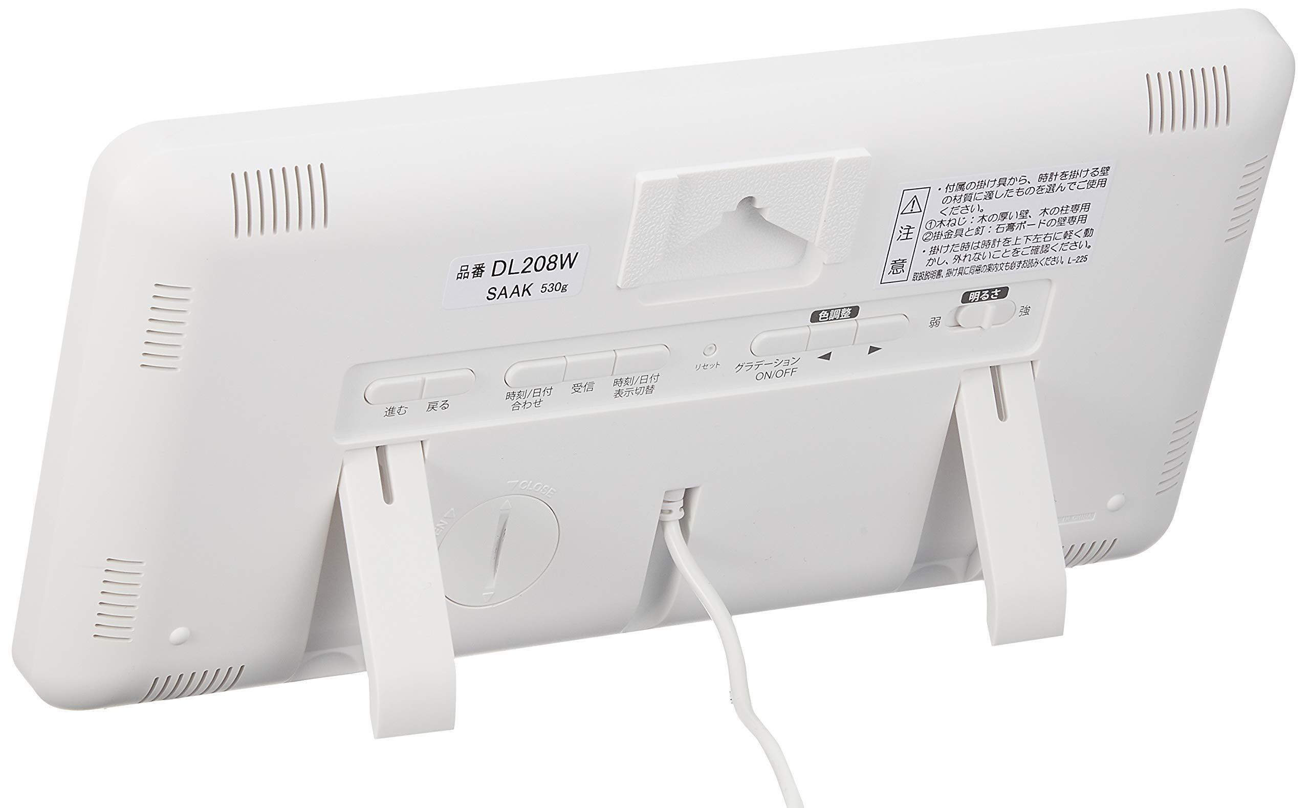 セイコークロック(Seiko Clock) セイコー クロック 掛け時計 置き時計 兼用 電波 デジタル 交流式 カラー液晶 シリーズC3 白 DL208W SEIKO。 機能 電波修正機能(40kHz/60kHz自動選局・受信OFF機能つき) 時刻/カレンダー表示切替 2099年までのフルオートカレンダー機能 六曜表示(2030年12月31日まで) 高コントラスト液晶 明るさ切替機能 置用スタンドつき(掛置兼用) 石膏ボード用掛金具つき 温湿度表示(温度測定範囲:0℃~40℃ 測定精度: ±2℃ 湿度測定範囲:25%RH~85%RH 測定精度:±8%(25℃) 12時間制/24時間制切替式 専用ACアダプターつき(コード長約3m) バックアップ電池:CR2032(停電時などに時刻・カレンダー情報の記憶の為に駆動し、電池だけでは表示しません。 ) くっきり見やすい表示で大好評の「交流式デジタル時計」シリーズに掛置兼用タイプが登場。 使用シーンがますます拡がります。 標準電波クロック 正確な時刻情報をのせた電波を受信し、 自動的に表示時刻を修正するクロックです。 ご使用の際は、 できるだけ電波を受けやすい窓際などに置き、 電波ノイズの発生する場所は避けてください。 電波を受信していないときは、クオーツの精度で作動します。 また以下のような場所では正確に受信できない場合がありますので、 あらかじめご了承ください。 ・ビルの中、ビルの谷間、地下。 ・高圧線、テレビ塔、電車の架線の近く。 ・テレビ、冷蔵庫、エアコン、空気清浄機、パソコン、ファクシミリ等の 家電製品やOA機器の近く。 ・工事現場、空港の近くや交通量の多い所など、 電波障害の起きる所。 ・乗り物の中。 (自動車、電車、飛行機など。 ) ・その他電波ノイズを発生させるものの近く。 ・スチール机等の金属製の家具の上や近く。 ※受信可能地域以外でも条件によっては受信可能な場合があります。 壁掛け用金具つき 『木ネジ』(木の柱、木の厚い壁用)と『石膏ボード用掛け金具』を同梱しています。 掛ける壁の構造にあった金具をご使用ください。 コンクリートなど上記以外の壁には、添付の掛け具は使用できません。 市販の掛け具をお買い求めください。 夜でも見える交流タイプ 選べる70色の美しい表示 優れた視認性でスタイリッシュに時を彩る交流式電波クロック。 くっきり見やすい表示で大好評の「交流式デジタル時計」シリーズに掛置兼用タイプが登場。 使用シーンがますます拡がります。 置用スタンドつき(掛置兼用) 『木ネジ』(木の柱、木の厚い壁用)と『石膏ボード用掛け金具』を同梱しています。 六曜表示(2030年12月31日まで) 時刻/カレンダー表示切替、温湿度表示つきです。 選べる文字色70色 表示色をお好みで設定できます。 高コントラスト液晶 明るさ切替機能。 お部屋の壁になじむ白色コード。 専用ACアダプターつき(コード長約3m) バックアップ電池:CR2032。 正確な時刻情報をのせた電波を受信し、自動的に表示時刻を修正するクロックです。 S000-K9999