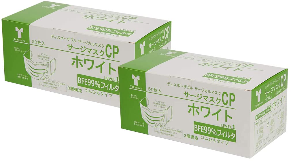 [竹虎] 【2箱セット サージカルマスクCP レベル1 医療用マスク 50枚入 2箱(計100枚) ホワイト ブルー ピンク ピンクS (ホワイト) 10/08更新 | karuamiruku