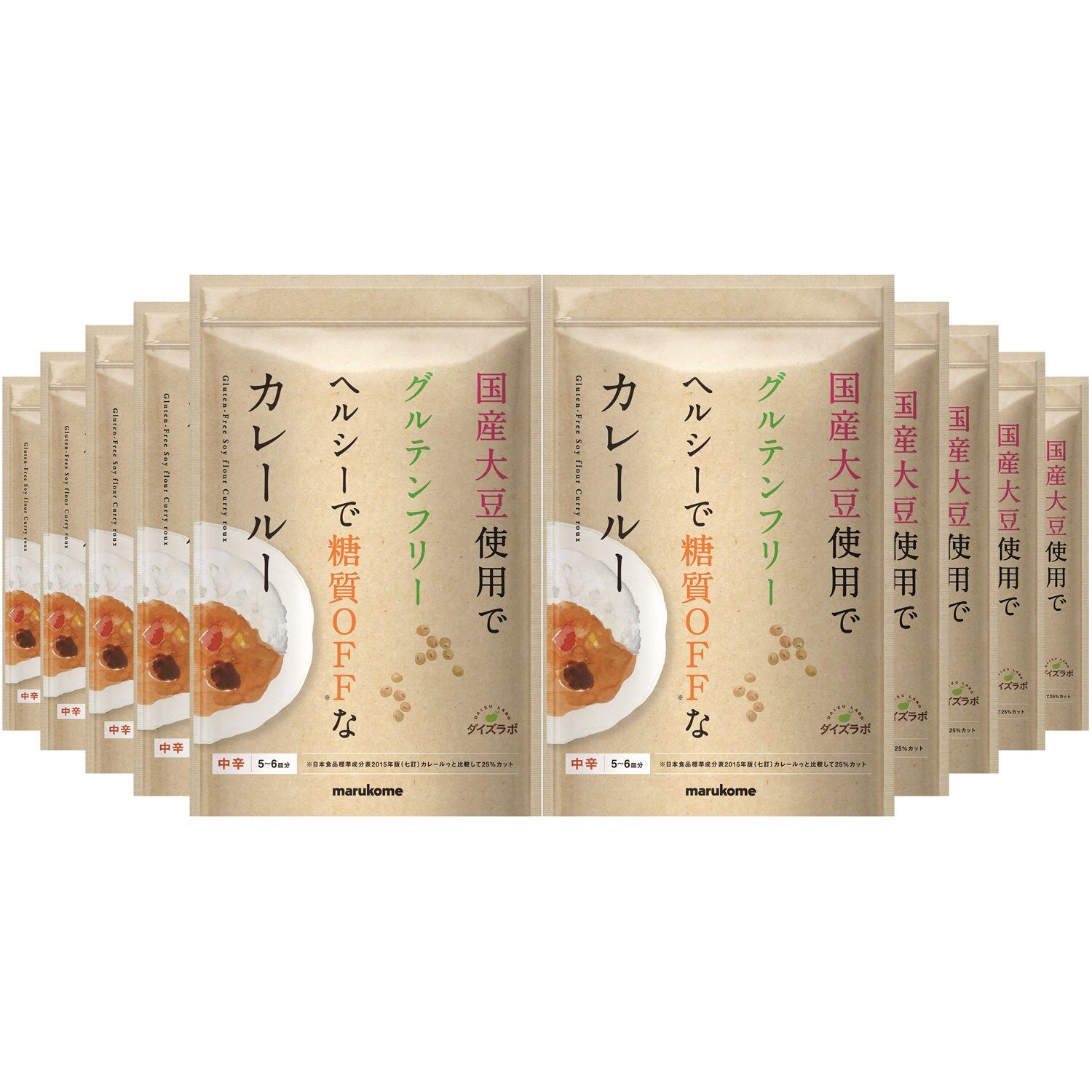 マルコメ ダイズラボ 大豆粉のカレールー グルテンフリー 【中辛】 120g×10個。 小麦粉の代わりに大豆粉を使用したカレールー。 小麦粉を使用したカレールーと比べて1人前25%の糖質カットを実現しました。 グルテンフリー、高たんぱくであるほか、食物繊維が豊富。 粉末タイプでカレー以外にも、さまざまな料理にアレンジが可能です。 商品がおいしく、楽しく、適正糖質であることを示す「ロカボマーク」付きです。 【内容量】120g×10個。 【糖質カット】小麦粉の代わりに大豆粉を使用したカレールー。 小麦粉を使用したカレールーと比べて1人前25%の糖質カットを実現しました。 【グルテンフリー】高たんぱくであるほか、食物繊維が豊富。 粉末タイプでカレー以外にも、さまざまな料理にアレンジが可能です。 【ロカボマーク】商品がおいしく、楽しく、適正糖質であることを示す「ロカボマーク」付きです。 【原材料】大豆粉(国内製造)、食用油脂、難消化性デキストリン、カレー粉、でん粉、食塩、唐辛子加工品、トマト粉末、チャツネ、香辛料、酵母エキス粉末、チキンブイヨン粉末、フライドオニオン粉末、マッシュルームエキス粉末/調味料(アミノ酸等)、カラメル色素、増粘剤(キサンタンガム)、甘味料(アセスルファムK、スクラロース)、酸味料、(一部にごま・大豆・鶏肉・バナナを含む)。 S600-K9999