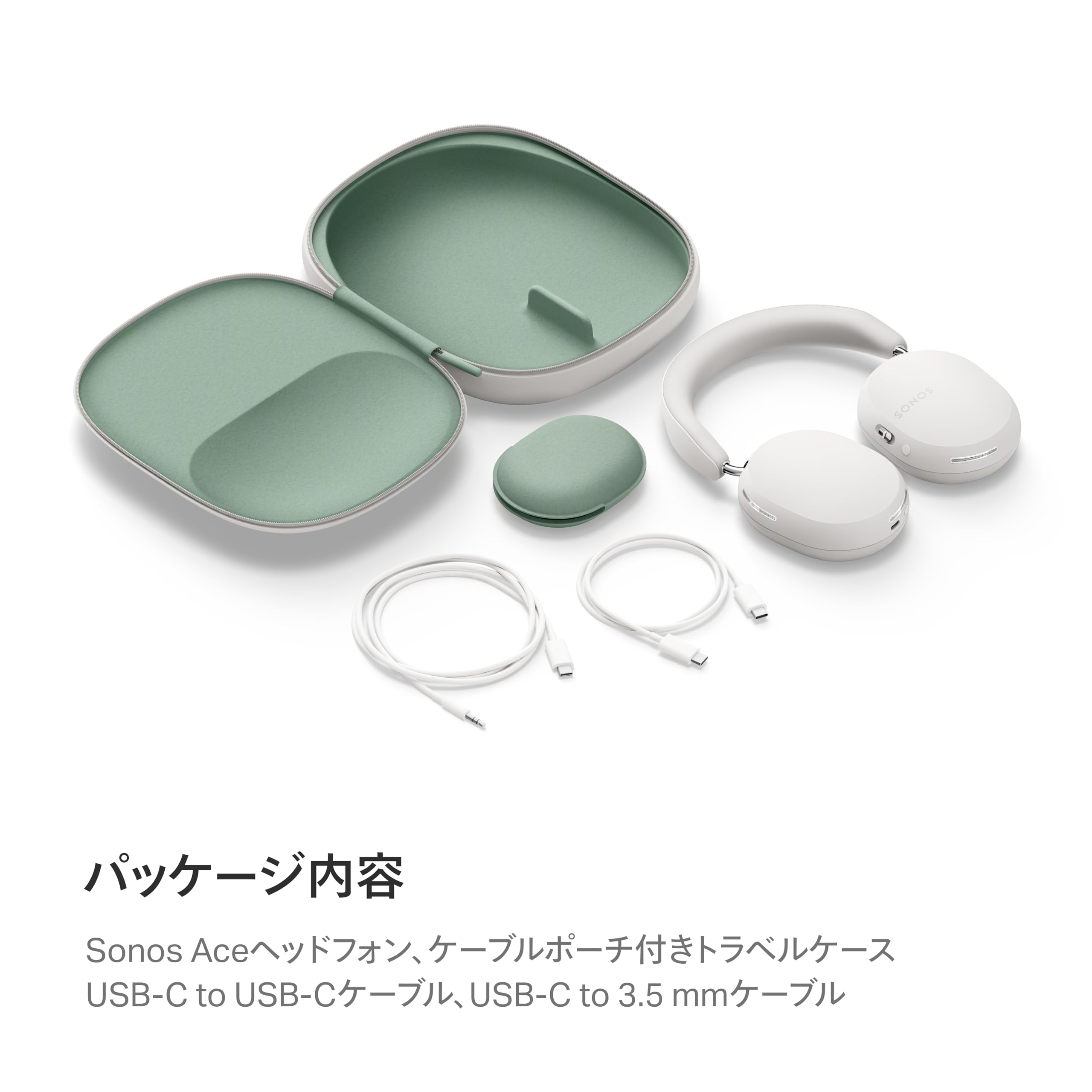Sonos Ace ※価格改定【VGP 2025 SUMMER 金賞】【VGP 2025 コンセプト大賞&金賞】【家電批評空間オーディオヘッドホンBEST BUY 2024】 完全ワイヤレス オーバーイヤーヘッドホン Bluetooth ノイズキャンセリング 空間オーディオ ドルビーアトモス ヘッドトラッキング ロスレスオーディオ再生 最大30時間再生 USB-C 急速充電 ホワイト。 Sonos初のヘッドフォン、高音質、ノイズキャンセル、空間オーディオの再生が可能。 Sonosサウンドバーのサラウンドをワンタッチでヘッドホンに切替機能(Sonos Arc, Beam, Rayに対応)。 Sonos Ace 【VGP 2025 ノイズキャンセリングヘッドホン(6万円以上)部門 金賞受賞】【VGP 2025 コンセプト大賞受賞】【家電批評 空間オーディオヘッドホン部門 BEST BUY2024 受賞】完全ワイヤレス Bluetooth接続 ノイズキャンセリングヘッドホン 空間オーディオ ドルビーアトモス ヘッドトラッキング ロスレスオーディオ 最大30時間再生 急速充電 ホワイト。 技適マーク認証済み商品(周波数帯:2.40~2.48GHz)。 S000-K9999