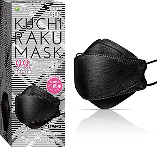 【30枚×2箱】 iSDG 医食同源ドットコム KUCHIRAKU MASK (クチラクマスク) ブラック 30枚入り2箱セット。 【カラー】ブラック。 【内容量】30枚入り×2箱。 【サイズ】約21cm×約8cm (限界まで広げた時の 縦の長さ:約14cm)。 【フィルター性能】3層不織布高機能フィルター。 【ご使用上の注意】本商品は有毒な粉塵やガス等を防ぐ目的では使用できません。 本商品の使用により、かゆみ、かぶれ、発疹等が生じた場合は使用を中止し、医師または薬剤師にご相談ください。 本商品の使用中、臭いで気分が悪くなった場合や息苦しさを感じた場合には使用を中止してください。 乳幼児の手の届かない所に保管してください。 高温多湿な場所や、直射日光の当たる場所を避けて保管してください。 マスクを着用中、耳に痛みや不快感を感じた場合には使用を一時中断してください。 耳ゴムがきつい場合には、軽く伸ばしてお使いください。 マスクは使い切りタイプですので、洗って再利用はしないでください。 非常に柔らかい素材を使用しておりますので、使用状況により、不織布の毛羽立ちなどが見られる場合がございます。 健康を害することはございませんが、新しいものをお使いください。 製造上マスクの色合い、サイズに若干の差異がありますがご了承ください。 S000-K9999
