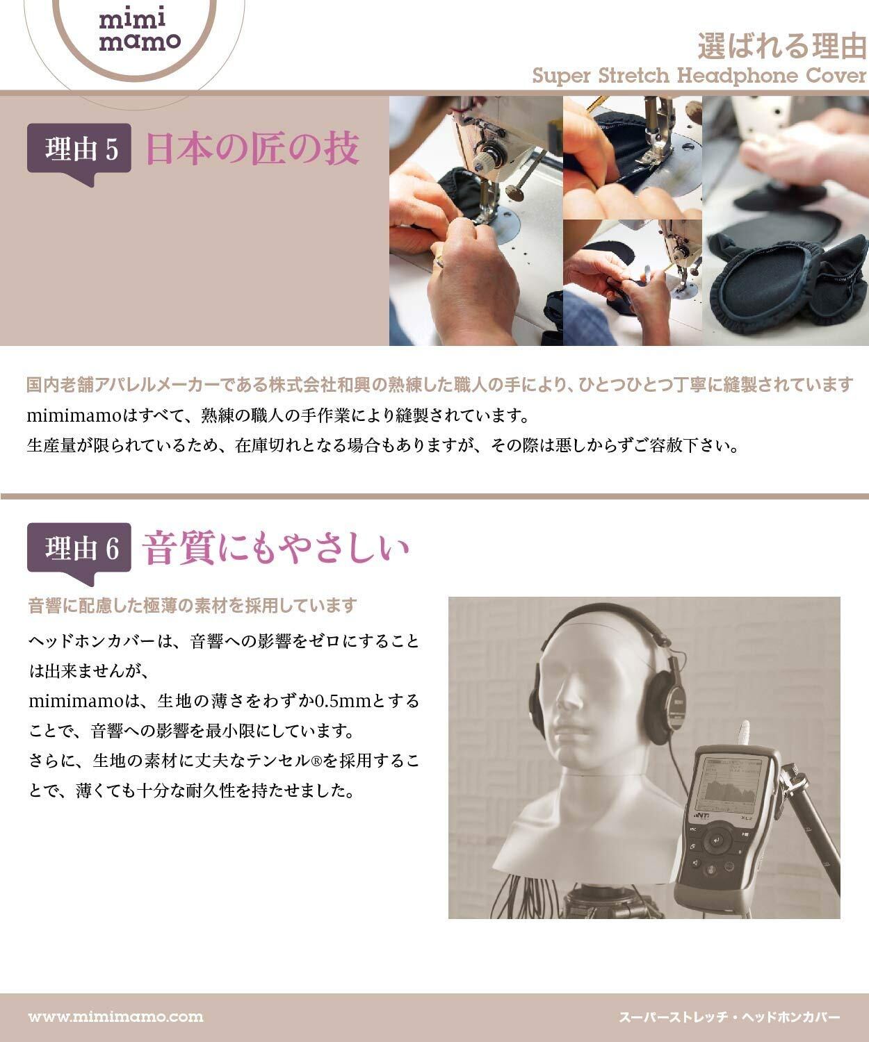 mimimamo (ミミマモ) スーパーストレッチヘッドホンカバー M (グレー) ※各機種への対応はメーカーHPのヘッドホン対応表をご確認ください。 日本製 数量:1セット。 直径:約70mm 厚さ:約0.5mm、本体:テンセル 89%、ポリウレタン11% ゴム:ナイロン89%、ポリウレタン11%。 【ご注意】ヘッドホンによって相性がございます。 ヘッドホンの各機種への対応をメーカーHPでご確認ください。 肌触りをよくするため、生地に起毛処理をしております。 パッケージから出したときには起毛が寝てしまっている場合がございますが、 しばらくご使用いただくことで徐々に起毛してまいります。 S320-K9999