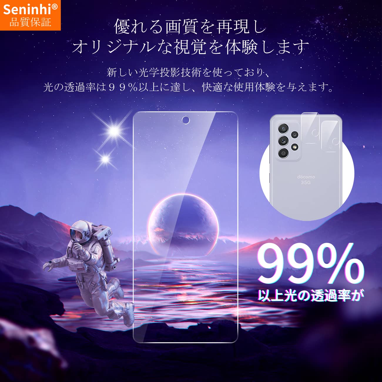 対応 Galaxy A52 5G ガラスフィルム + レンズフィルム 【2+2枚セット-国産旭硝子素材】対応 galaxy a52 5g フィルム SC-53B 強化ガラス ギャラクシーA52 液晶 保護フィルム 硬度9H 耐衝撃 飛散防止 貼り付け簡単 自動吸着 気泡ゼロ 指紋防止 ラウンドエッジ加工 超薄0.33mm 超高質感 3D Touch対応。 【国産AGC旭硝子ガラス 素材】携帯フィルム及びレンズ保護フィルムは国産AGC旭硝子ガラスを使っており、4.5時間の高温焼入れ処理して、強化を繰り返し、硬さは業界トップレベルの9Hに達しました。 市販の通常製品の5倍の硬さに達し、ナイフなどの鋭いものでも傷しません。 ハードコーティング技術を利用して、外部衝撃を吸収し、防爆性をアップして、外からの衝撃に簡単に吸収して、衝突されても、画面が壊れるリスクを 99% 減らします。 更に Galaxy A52 5G SC-53B 専用の強化ガラスフィルムは飛散防止加工を行っておりますので、万が一ガラスが割れても怪我を与えません。 【簡単に貼り付け】GalaxyA52 5G 保護フィルムの粘着面は自動吸着できるので、ガラスフィルムを携帯電話の画面に合わせるだけで自然に吸着し、しかも気泡の発生しません。 誰でも簡単に貼れます。 フィルム貼り苦手な方におすすめです。 【防水・油防止・指紋防止】 ガラスフィルム の表面にナノコーティングとイオン性撥油防水コーティングしており、通常のフィルムのようなザラザラ触り感じが一切ありません。 更に超指紋防止、汗防止、ビデオ干渉防止などの特徴を備えており、ゲームする場合に、持続感と爽快感などの優れる点があります。 指紋が付いても簡単に拭いてきれいになります。 【3Dタッチ対応】フィルムは0.26mmのゴールデンの厚さを設計して、指紋ロック解除などのタッチ感が敏感で、正しくタッチすると連続タッチでき、高感度で快適な操作を実現します。 【指紋防止・高感度】 Galaxy A52 5G SC53B 強化ガラス の表面は指紋防止コーティング加工しており、画面がさらさらで指紋が付きにくい、高感度で快適な操作ができます。 万が一汚れが付いても布で拭くときれいになります。 【ラウンドエッジ加工】真空メッキプロセスを使用し、正しい丸みをエッジ処理して、不快感がありません。 しかもエッジ部分へ衝撃が少なく、快適で滑らかな肌触りを提供する同時に、使用中に鋭い角のエッジで指を傷されません。 【市場に出回っている99%の携帯電話ケースに対応】 強化ガラスのサイズは携帯ケースを取り付けるために、十分なスペースがあり、両側が浮き上がりません。 何百もの携帯電話ケースをテストしました。 99%の携帯ケースに対応して、心配がありません。 【透明度99%】 新しくアップグレードした光学プロジェクション技術を使用して、より高い光透過率があり、超クリアな視覚体験を与えます。 裸画面の視覚感があるので、映画を見るか、ドラマを見ても、効果は非常に優れます。 S320-K9999