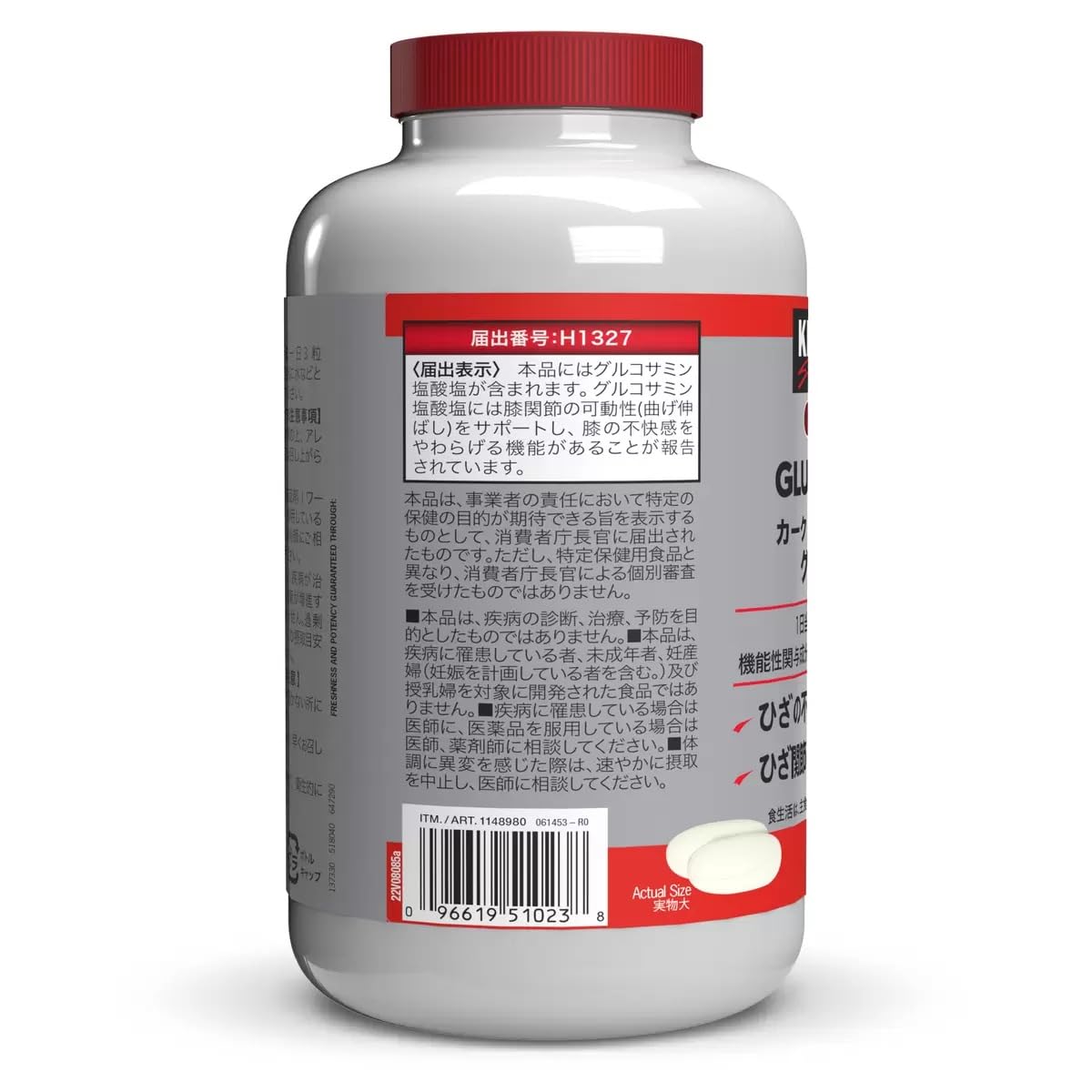 カークランドシグネチャー グルコサミン&コンドロイチン 300粒。 商品紹介 グルコサミンとコンドロイチン グルコサミンは、軟骨や結合組織を構成するプロテオグリカンの原料となる重要な成分です。 コンドロイチンは軟骨を構成するプロテオグリカンの中に含まれる成分です。 本製品は1日推奨量の3粒にグルコサミン1500mgとコンドロイチン1200㎎を含みます。 原材料・成分 原材料名:コンドロイチン硫酸/グルコサミン(エビ・カニ由来)、微結晶セルロース、HPMC、加工デンプン、高級脂肪酸、微粒二酸化ケイ素、グリセリン。 商品サイズ (幅×奥行×高さ) :20×12×12cm。 原産国:カナダ。 内容量:455g(1515mg×300粒)。 S000-K9999