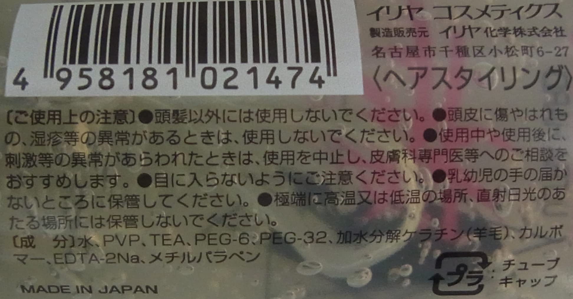 スパイキージェルUH130g。 商品紹介 強力なセット力とツヤ。 無香料。 髪を保護するケラチンプロテイン配合。 使用上の注意 頭髪以外には使用しないでください。 頭皮に傷やはれもの、湿疹等の異常があるときは、使用しないでください。 使用中や使用後に刺激等の異常があらわれたとき、使用を中止し、皮膚科専門医等へのご相談をおすすめします。 目に入らないようにご注意ください。 乳幼児の手の届かないところに保管してください。 極端に高温又は低温の場所、直射日光のあたる場所には保管しないでください。 原材料・成分 水、PVP、PEG-30、TEA、加水分解ケラチン、カルボマー、EDTA-2Na、メチルパラベン 使用方法 適量を手にとり、手のひらでよく伸ばしてから髪に塗布してください。 前髪の立ち上がりなど、ポイントで使いたい場合は、指先でつまむようにして塗布していただくと効果的です。 安全警告 お肌に合わないとき即ち次のような場合には、使用を中止してください。 そのまま使用を続けますと、症状を悪化させることがありますので、皮膚科専門医等にご相談されることをおすすめします。 (1)使用中、赤味、はれ、かゆみ、刺激等の異常があらわれた場合 (2)使用したお肌に、直射日光があたって上記のような異常があらわれた場合 傷やはれもの、湿疹等、異常のある部位にお使いにならないでください。 目に入ったときは、直ちに洗いしてください。 幼小児の手の届かない場所に保管してください。 極端に高温又は低温の場所、直射日光のあたる場所には保管しないでください。 商品サイズ (幅×奥行×高さ) :6.2cmx3.5cmx16.3cm。 内容量:130g。 S000-K9999