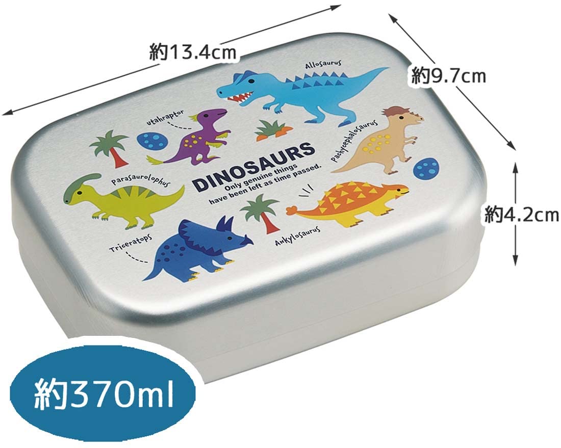 スケーター (skater) 弁当箱 ディノサウルス ピクチャー 370ml アルミ製 保温庫対応 子供用 日本製 ALB5NV-A。 保温庫でも使える、衝撃にも強く丈夫で長持ちするアルミ製 お弁当箱半分に入るご飯の量は、お茶碗(約200ml)約0.9杯分 プラスチック製に比べ丈夫で長持ち 入れ分けに便利な中子付 名前が書けるシール付。 容量:370ml /サイズ:幅13.4×奥行9.7×高さ4.2cm/生産国:日本。 セット内容・付属品:本体+中子+ベルト+名前シール。 保温庫でも使える、衝撃にも強く丈夫で長持ちするアルミ製。 入れ分けに便利な中子付き。 素材・材質:本体・フタ=アルミニウム板厚0.7mm(アルマイト加工) 中子=ポリプロピレン。 S000-K9999
