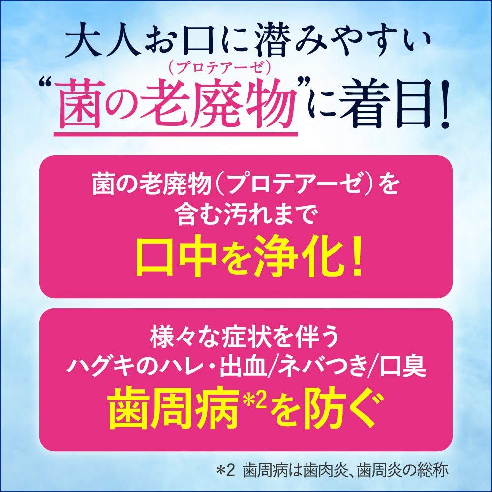 ピュオーラ GRAN ホワイトニング 95g 歯周病予防 [医薬部外品]。 商品紹介 大人お口に潜みやすい菌の老廃物(プロテアーゼ)に着目。 歯周病の原因菌だけではなく、菌の老廃物(プロテアーゼ)を含む汚れまで口中浄化。 W浄化成分(エリスリトール【清浄剤】/γ-オリザノール【洗浄剤】)配合。 ハグキの炎症を抑え、様々な症状(ハグキのハレ、出血、ネバつき、口臭)を伴う歯周病(歯肉炎・歯周炎)を防ぐ。 更に沈着汚れを落としやすくし、つややかで美しく白い歯へ (医薬部外品) 原材料・成分 清浄剤:エリスリトール 基剤:ソルビット液、水 湿潤剤:濃グリセリン、PG、シア脂 清掃剤:含水ケイ酸、無水ケイ酸 粘度調整剤:無水ケイ酸、CMC・Na 発泡剤:ラウリル硫酸塩、ステアリン酸POEソルビタン 香味剤:香料(ホワイトハーバルミントタイプ)、サッカリンNa 薬用成分:モノフルオロリン酸ナトリウム、グリチルリチン酸ジカリウム*1、塩化セチルピリジニウム*2 光沢剤:フィチン酸液*3 清涼剤:メントール コーティング剤:ポリリン酸Na*4 pH調整剤:水酸化ナトリウム液 着色剤:酸化Ti 粘結剤:カラギーナン、カンテン末 洗浄剤:γ-オリザノール 使用方法 歯ブラシに豆粒ほどを取り、2分間円運動でブラッシュし、全面に当て、しっかりと洗浄し、口をゆすいでください。 ご注意(免責)>必ずお読みください 傷等がある時は使わない ハミガキが飛び散って目に入らないように気をつける。 目を傷つけることがあるので、こすらずすぐに充分洗い流し、異常が残る場合は眼科医に相談する 口中の異常、発疹やかゆみ、強い咳こみ等の症状が出たら使用を中止し医師に相談する・。 香り:ホワイトハーバルミントの香味。 内容量:95g。 成分:清浄剤:エリスリトール 基剤:ソルビット液、水 湿潤剤:濃グリセリン、PG、シア脂 清掃剤:含水ケイ酸、無水ケイ酸 粘度調整剤:無水ケイ酸、CMC・Na 発泡剤:ラウリル硫酸塩、ステアリン酸POEソルビタン 香味剤:香料(ホワイトハーバルミントタイプ)、サッカリンNa 薬用成分:モノフルオロリン酸ナトリウム、グリチルリチン酸ジカリウム*1、塩化セチルピリジニウム*2 光沢剤:フィチン酸液*3 清涼剤:メントール コーティング剤:ポリリン酸Na*4 pH調整剤:水酸化ナトリウム液 着色剤:酸化Ti 粘結剤:カラギーナン、カンテン末 洗浄剤:γ-オリザノール。 ブラント名: ピュオーラ。 メーカー名: 花王。 S000-K9999