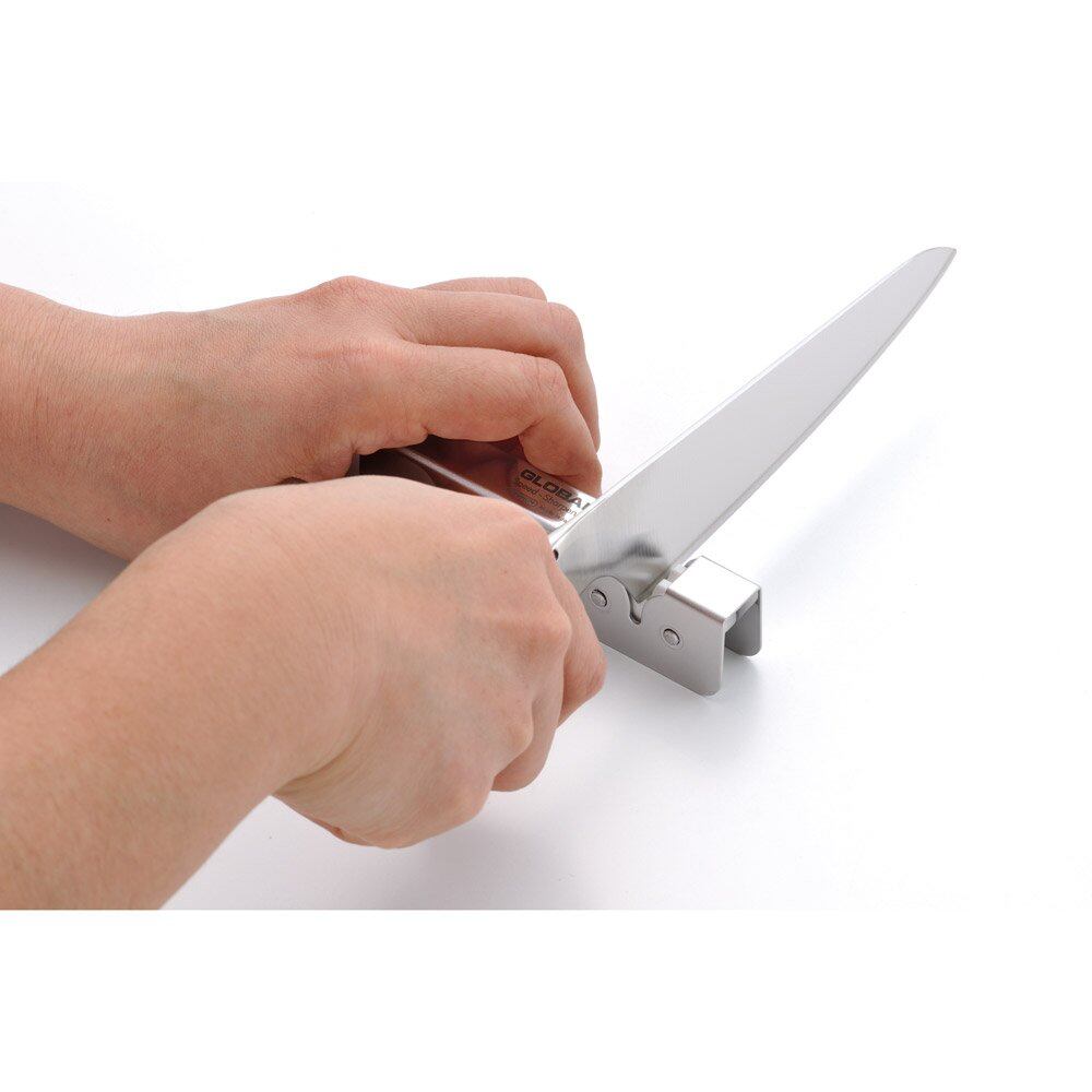 グローバル 三徳 3点セット GST-B46。 サイズ:G-46/全長/31、刃渡り/18、刀幅/5cm、GS-3/全長/26cm、刃渡り/13cm、刀幅/3.5cm、GSS-01/幅1.5×奥行10.5×高さ2.5cm。 材質:刃/モリブデン・バナジウム、柄/18-8ステンレス、シャープナー:本体/ステンレス、研ぎ部/アルミナセラミックス。 生産国:日本。 刃付け:三徳・ペティーナイフ/両刃(右利き・左利き兼用)。 用途:三徳/肉、野菜切り、シャープナー/ステンレス包丁用、ペティーナイフ/肉、野菜切り。 食洗機・食器乾燥機:対応不可。 セット内容:G-46(三徳 18cm)、GS-3(ペティーナイフ 13cm)、GSS-01(スピードシャープナー)。 S350-K9999