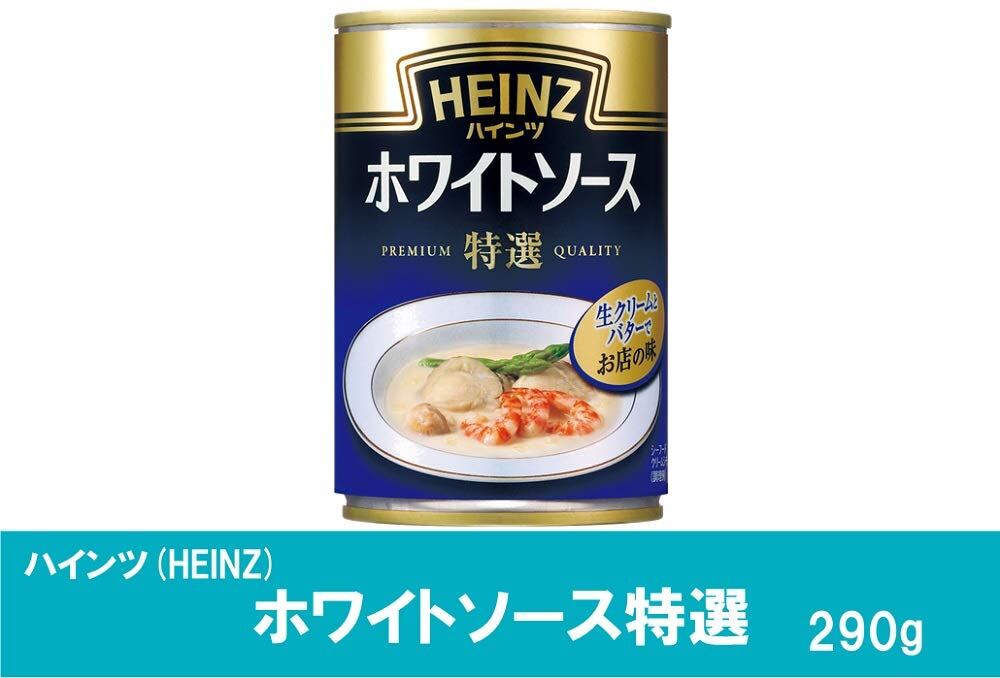 ハインツ (HEINZ) ホワイトソース特選 290g×4缶 【ホテル・レストランの本格派】。 商品紹介 商品紹介 ハインツの業務用ホワイトソースは1974年の発売以来、ホテルやレストランの洋食で親しまれてきました。 特選はそんなお店の味わいがご家庭で楽しめる本格派のソースです。 生クリームとバターを贅沢に使用し、白ワインで仕上げた上質なソースが素材のおいしさを引き立てます。 栄養成分100gあたり:水分 79.4g、たんぱく質 1.5g、脂質 9.3g、炭水化物 8.7g、灰分 1.1g、ナトリウム 310mg、食塩相当量 0.8g 原材料・成分 生クリーム、小麦粉、脱脂粉乳、とうもろこし油、ショートニング、バター、野菜(たまねぎ、セロリ)、白ワイン、食塩、チキン風味ブイヨン、砂糖、たん白加水分解物、香辛料、酵母エキス/増粘剤(加工デンプン)、調味料(アミノ酸等)、(一部に小麦・乳成分・大豆・鶏肉を含む) 原材料・成分 生クリーム、小麦粉、脱脂粉乳、とうもろこし油、ショートニング、バター、野菜(たまねぎ、セロリ)、白ワイン、食塩、チキン風味ブイヨン、砂糖、たん白加水分解物、香辛料、酵母エキス/増粘剤(加工デンプン)、調味料(アミノ酸等)、(一部に小麦・乳成分・大豆・鶏肉を含む) 安全警告 缶のふちで手を切らないようにご注意ください。 内容量:290g×4缶。 カロリー:125kcal(100gあたり)。 商品サイズ(高さ×奥行×幅):202mm×67mm×134mm。 缶詰ソースで簡単にお店の味。 S000-K9999