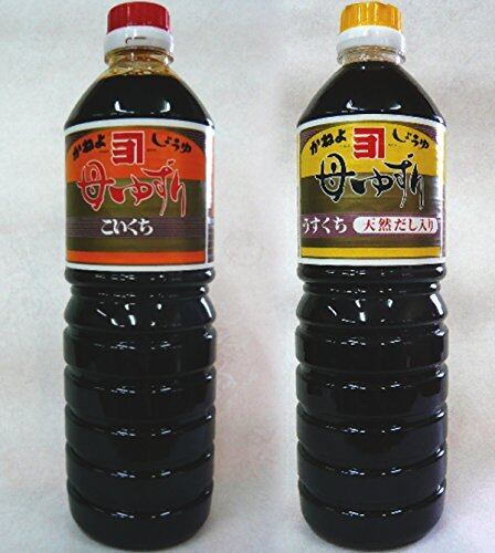 横山醸造 カネヨ母ゆずり濃口醤油1000ml,薄口醤油1000mlセット。 かける、煮る、炒めるなど、様々な用途に便利な、濃口と薄口のセットです。 (薄口)原材料:しょうゆ(小麦・大豆を含む)さつま本ぶし・いりこ・みりん風調味料・調味料(アミノ酸等)・果糖ぶどう糖液糖・甘味料(甘草・ステビア)・ビタミンB1・乳糖。 (濃口)原材料: 脱脂加工大豆、小麦、食塩、アミノ酸液、糖類(砂糖、果糖ぶどう糖液糖)、調味料(アミノ酸等)、カラメル色素、甘味料(甘草、ステビア、サッカリンNa)ビタミンB1、増粘剤(キサンタンガム)、乳糖。 1本あたりの商品サイズ(高さx奥行x幅):270mmx80mmx80mm。 S000-K1010