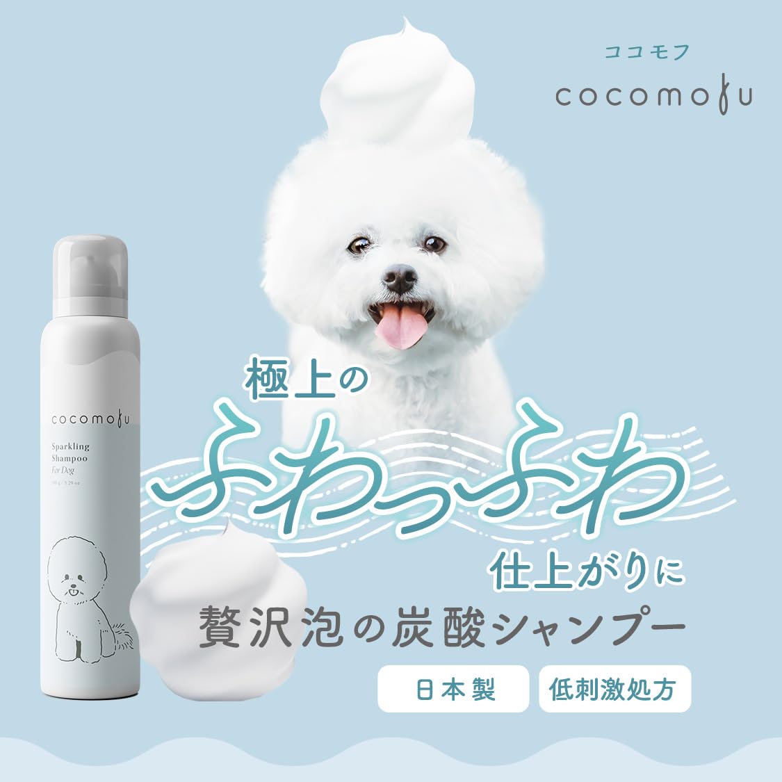 cocomofu ココモフ ペット シャンプー 犬 ふわふわ 炭酸 泡 ワンプッシュ 低刺激 小型犬。 贅沢泡の犬用炭酸シャンプー。 極上のふわっふわ仕上がりに。 化粧品メーカーが開発した低刺激処方で安心安全。 150g。 繊細な愛犬のお肌をやさしく包み込む弾力泡。 希釈&泡立て不要 ワンプッシュで濃密泡が完成。 シャンプーしながらスキンケア。 人間の化粧品にも採用される贅沢成分を厳選配合しているので、うるおいをしっかり与えながら健康なお肌へと整えます。 高濃度炭酸で毛穴を引き締めふんわり立ち上がった健康的な毛並みへ。 筋肉がほぐれ疲労回復やリラックス効果も。 皮脂汚れオフ+消臭殺菌効果。 肌トラブルやニオイの原因となる蓄積汚れも炭酸の発砲する力でしっかり浮かせて洗い上げます。 こだわりぬいたフローラルブーケの香りと 8つのフリー パラペン・着色料・鉱物油・アルコール・シリコン・合成界面活性剤・蛍光剤・漂白剤。 毎日の散歩の帰り・足元の部分洗いにもオススメです。 S000-K9999