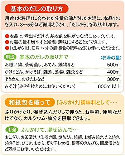 丸三 ふりだし (8g×50入り )× 2袋。 ティーバッグ方式万能和風だし。 本品は3~5分煮出すだけで基本的な味がつくようになっています。 お湯の量で味の濃さが変わりますので、お好みで加減してください。 お吸い物、茶わん蒸し、おでん、鍋物などにはお湯の量500ml。 かけうどん、かけそば、雑煮、煮物、雑炊などにはお湯の量400ml。 そうめん、おひたしなどにはお湯の量300ml。 みそ汁(みそを控えめにお使いください)お湯の量600ml以上。 ふりかけたり、混ぜ込んだりして使うとカルシウム、鉄分を摂取できます。 S000-K9999