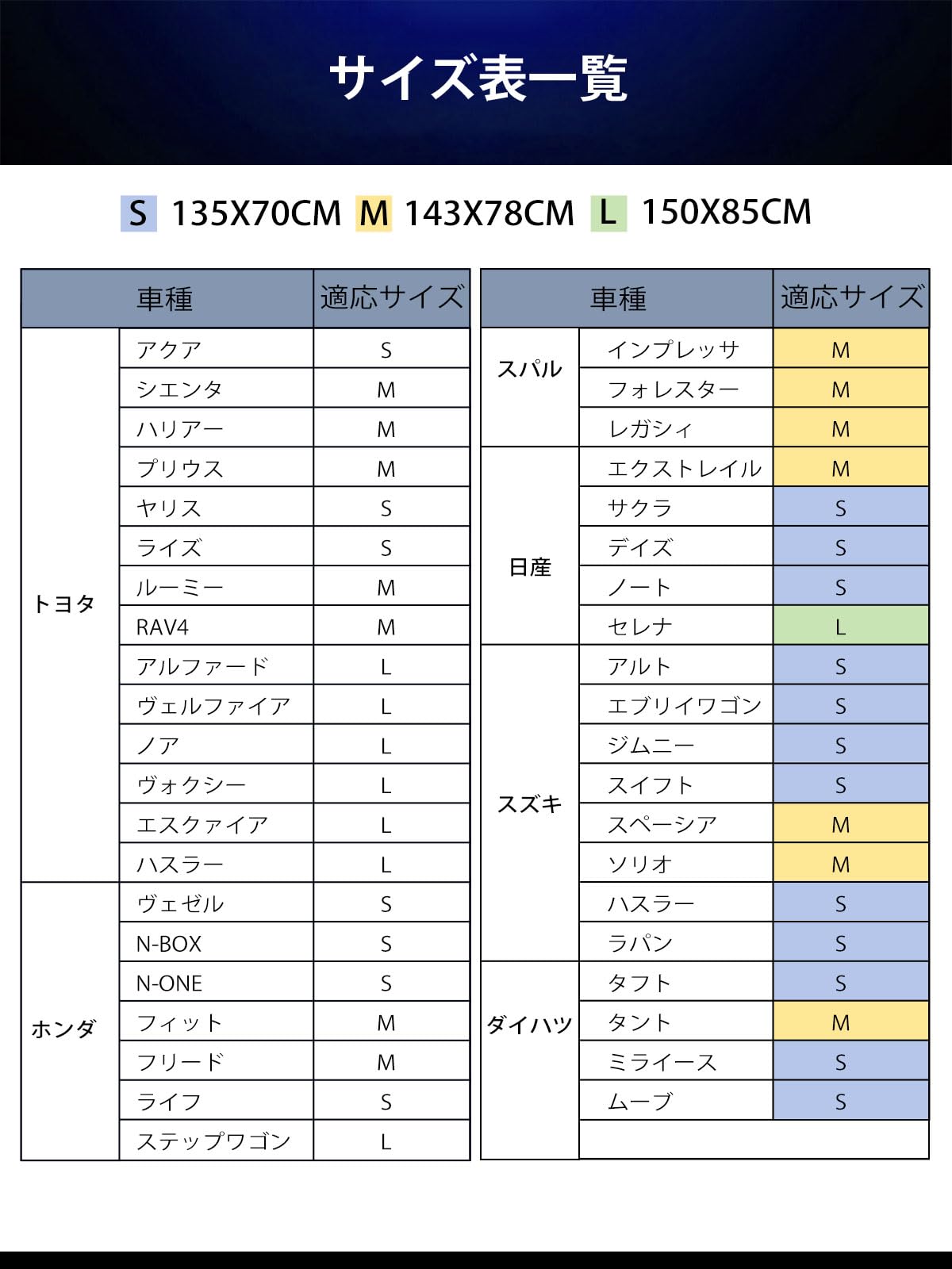 サンシェード 車 フロント【2025改良式曲がる中棒・強化十本骨】【ガラス繊維製の傘骨先端】傘式 車用サンシェード バックミラー開き口設計 フロント 遮光遮熱 UVカット カー用品 サンシェード 傘骨先端は折り曲げ可能 暑さ対策 紫外線対策 内装劣化防止 取付簡単 車パラソル 車中泊 露天駐車 日焼け 収納ポーチ付き L(150*85CM)。 【どんな車でも5秒で簡単設置】「サンシェード 車のサイズ調整で出発が遅れる…」そんな経験はありませんか?本製品は軽自動車から大型SUVまで対応可能な3サイズ(S/M/L)を展開。 サンシェード 車として、特殊ポリカーボネート製の傘骨が最大150度まで柔軟に曲がり、トヨタ・アクアからランドクルーザーまで、ダッシュボードに引っかけるだけで自動フィット。 モニター調査では、サンシェード 車の平均設置時間が4.8秒であることを実証済み。 サイズ選びに迷った際は、主要車種ごとの推奨サイズ表をご参照ください。 【高級車にも安心な接触保護設計】「サンシェード 車の先端が内装を傷つけた」――その声を受けて生まれた二重の安全対策。 傘骨の先端には2mm厚のシリコンカバー(JIS耐摩耗試験Grade A)を採用し、レクサス車のダッシュボードで500回の接触テストを実施、キズゼロを確認済み。 さらに、サンシェード 車用として設計されたガラス繊維コアの傘骨は折れにくく、強風下でも高い耐久性を発揮。 BMW 5シリーズユーザーからは「皮革シートとの相性も良好」と高評価を得ています。 【外気温40℃でも快適な車内空間】「真夏の車内がサウナ状態」――そんな悩みを解消する、サンシェード 車専用の5層構造高遮熱設計。 UV99%カット・赤外線95%遮断の効果により、炎天下(外気温35℃)での4時間駐車後でも、ダッシュボード温度を平均10℃低下。 Lサイズを使用した日産セレナのユーザーからは「エアコン効率が向上し、燃費が10%改善」との報告も。 銀面は遮熱、黒面はプライバシー保護に使い分け可能なサンシェード 車です。 【スリムに収納・携帯性抜群】従来品に多かった収納時の煩わしさを解消するスリム設計。 サンシェード 車としては珍しく、軽量アルミフレームを採用し、最軽量モデルはわずか380g。 女性でも片手で簡単に扱えます。 ホンダ・フィットのユーザーからは「鞄にすっきり収まり、他の荷物を傷つけない」との声も。 【曲面ガラスにもフィット】四角いサンシェード 車では防げない隙間光も、3Dスキャンで最適化された車種別設計により徹底カット。 たとえば日産セレナ(Lサイズ推奨)では隙間面積を72%削減。 特許取得の曲面傘骨により、斜め45度から差し込む夕日もしっかり遮光。 トヨタ・プリウスのユーザーからは「西日が気にならなくなった」との多数の声が寄せられています。 ご使用時のご注意: ・傘の骨を折り曲げた後は、車内にそっと置いてください。 ・強く押し付けたり、無理に力を加えると、車内にキズが付く恐れがありますので、丁寧にお取り扱いください。 S000-K9999
