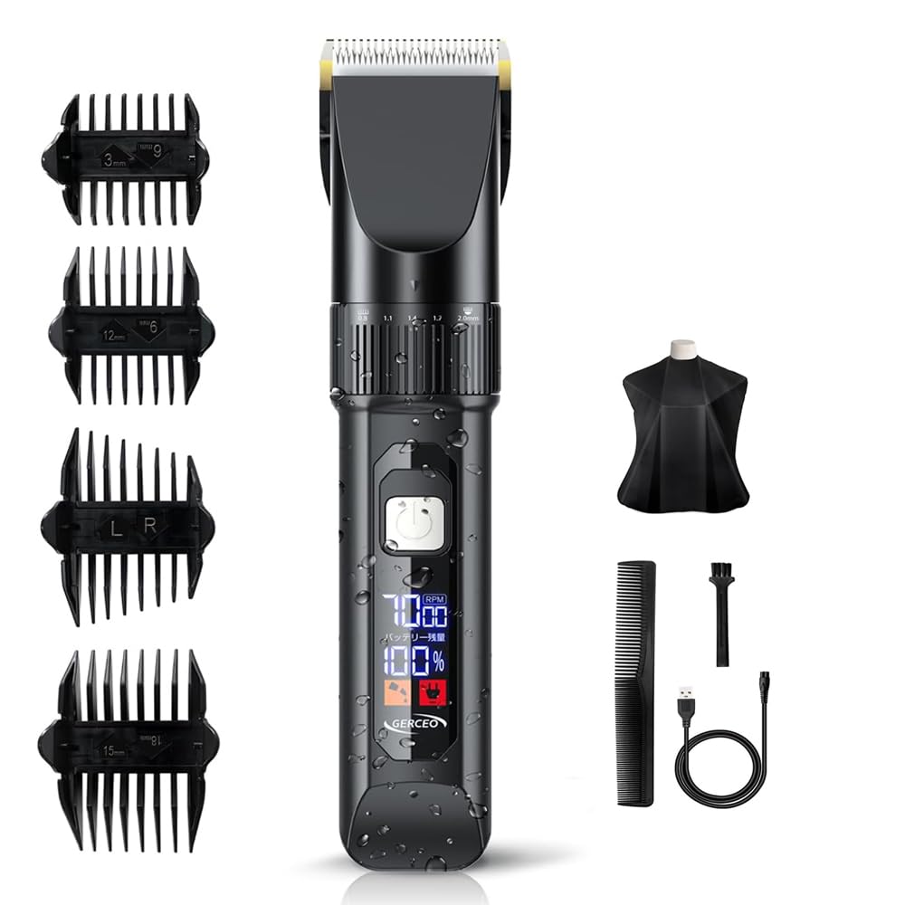 バリカン メンズ ヘアカッター 【新登場& USB充電式】電動バリカン 散髪用 水洗い可 IPX7防水 大容量バッテリー内蔵 4段階スピード調節 5段階ダイヤル X 4種類アタッチメントの付け替え 低騒音 軽量 コードレス Led電量ディスプレイ 子供/家庭/業務用 人間工学設計 日本語説明書 誕生日 プレゼント ギフト 父の日 10/08更新 | karuamiruku