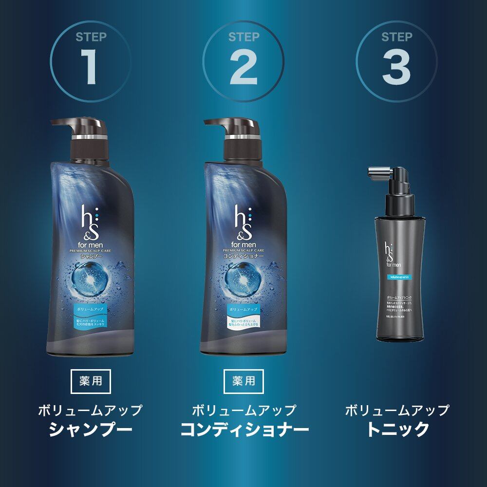 h&s for men シャンプー+コンディショナー ポンプセット 370mL+370g ボリュームアップ エイチアンドエス フォーメン。 商品紹介 ボリュームアップシリーズ クレンジング シャンプー コンディショナー h&s for men 乾燥・かゆみ・フケを防ぎ、 ボリュームのある髪へ セット 男の2倍皮脂に負けない 130%**に泡立ちUP! 深海ミネラル*配合の 泡が、毛穴の中まで浸透。 毛穴の中まで一発洗浄。 乾燥・かゆみ・フケの根本原因を、強力洗浄。 余分な皮脂 地肌のうるおいをキープ かゆみ・フケの原因 深海ミネラル* 使用時のメカニズム *深海にも含まれるミネラルと同成分配合 **従来品比で洗髪時の手触りが向上 原材料・成分 成分:シャンプー: ジンクピリチオン液 精製水 ベンジルアルコール 塩化O-[2-ヒドロキシ-3-(トリメチルアンモニオ)プロピル]グァーガム 安息香酸ナトリウム 塩化ナトリウム ポリオキシエチレンラウリルエーテル硫酸ナトリウム 水酸化ナトリウム 無水クエン酸 メチルクロロイソチアゾリノン・メチルイソチアゾリノン液 ラウリル硫酸ナトリウム 香料 ヤシ油脂肪酸モノエタノールアミド セタノール クエン酸ナトリウム キシレンスルホン酸アンモニウム液 高重合メチルポリシロキサン(1) ジステアリン酸エチレングリコール 塩酸; コンディショナー: ジンクピリチオン液 精製水 L-グルタミン酸 ステアリン酸ジメチルアミノプロピルアミド セタノール ステアリルアルコール メチルクロロイソチアゾリノン・メチルイソチアゾリノン液 ベンジルアルコール 無水クエン酸 フェノキシエタノール 高重合メチルポリシロキサン(1) 塩化ナトリウム 香料 使用方法 ①髪を洗い、水分を切ります。 ②シャンプーを手に取り、髪に均等につけます。 ③髪を洗い、泡を洗い流します。 ④髪を洗い流した後、コンディショナーを髪につけます。 ⑤髪を洗い、コンディショナーを洗い流します。 h&s for men(エイチアンドエス) ボリュームアップ シャンプー・コンディショナー370mL+370g。 ボリュームアップシリーズ クレンジング シャンプー コンディショナー。 乾燥・かゆみ・フケを防ぎ、ボリュームのある髪へ。 男の2倍皮脂に負けない。 130%**に泡立ちUP!。 深海ミネラル*配合の泡が、毛穴の中まで浸透。 毛穴の中まで一発洗浄。 乾燥・かゆみ・フケの根本原因を、強力洗浄。 余分な皮脂 地肌のうるおいをキープ かゆみ・フケの原因 深海ミネラル*。 *深海にも含まれるミネラルと同成分配合**従来品比で洗髪時の手触りが向上"。 S000-K1010
